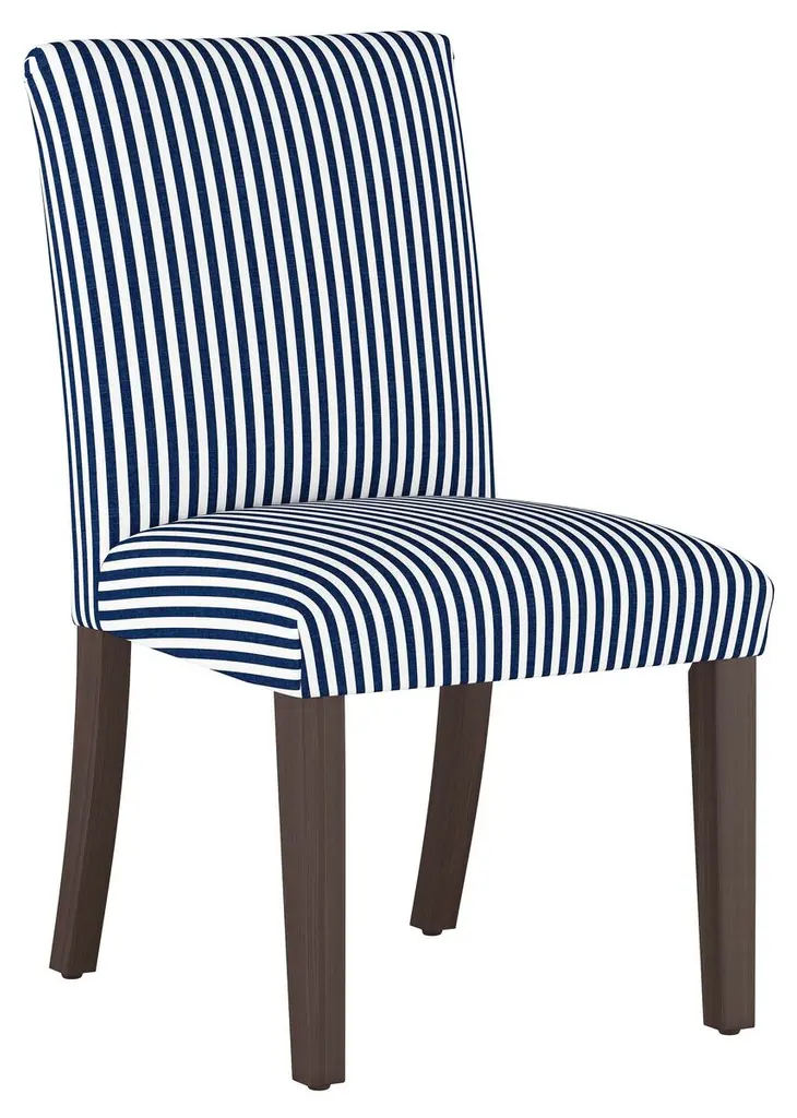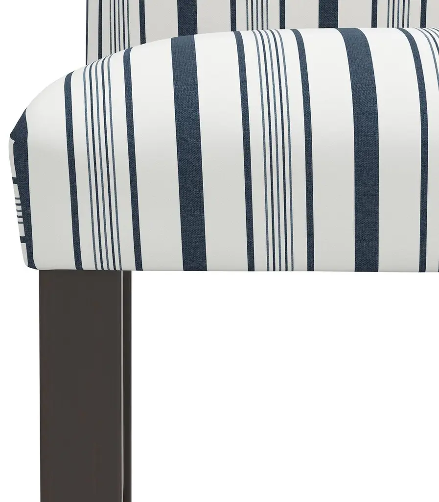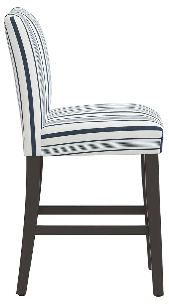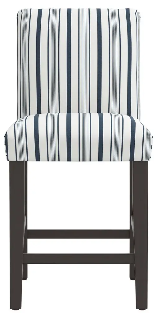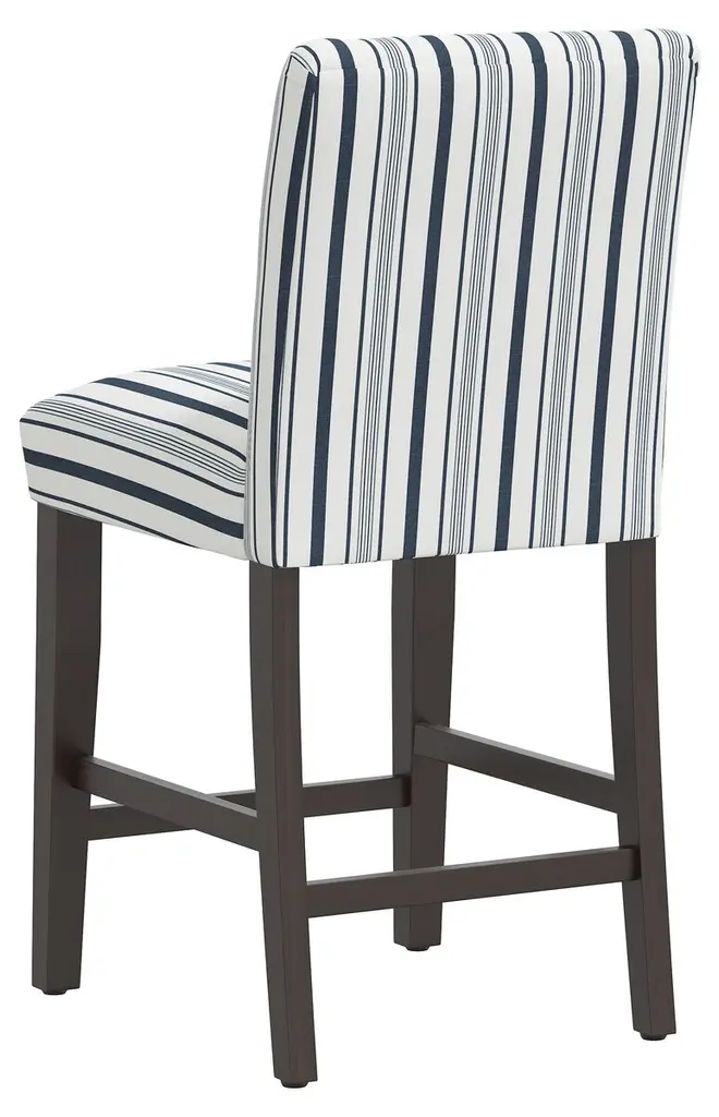 Exclusive to One Kings Lane: Handsome stripes accentuate the tailored silhouette of this counter stool. Ample padding of the seat and the back along with a well-placed footrest ensure long-lasting comfort.