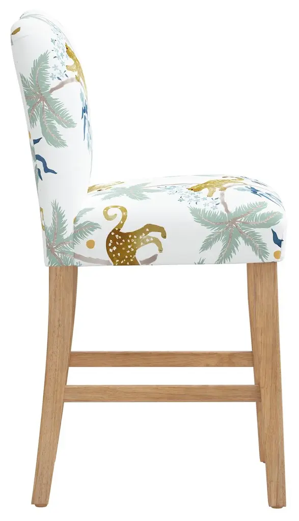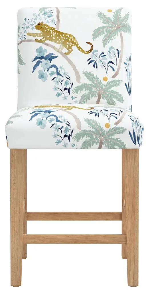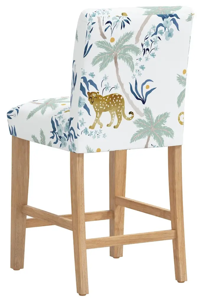 Exclusive to One Kings Lane: The painterly jungle-theme upholstery adds charm and whimsy to this clean-lined counter stool. Ample padding of both the seat and the back makes this stool as comfortable as it is chic.