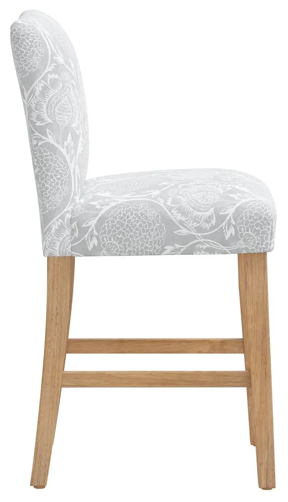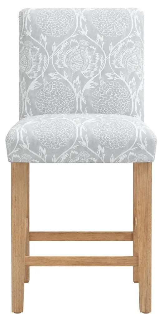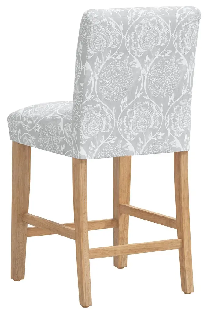 Exclusive to One Kings Lane: An oversize floral motif complements the tailored silhouette of this counter stool. Ample padding of the seat and the back along with a well-placed footrest ensure long-lasting comfort.