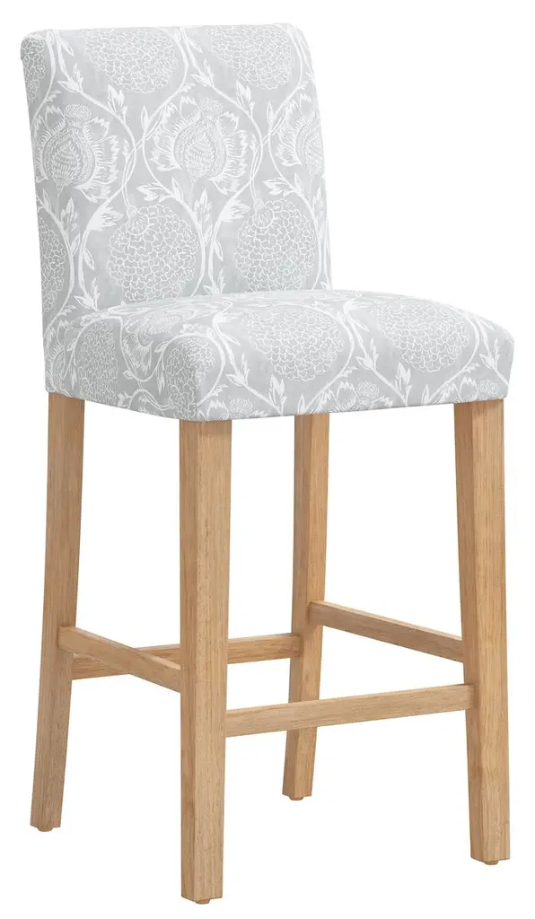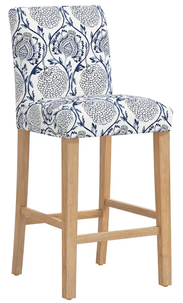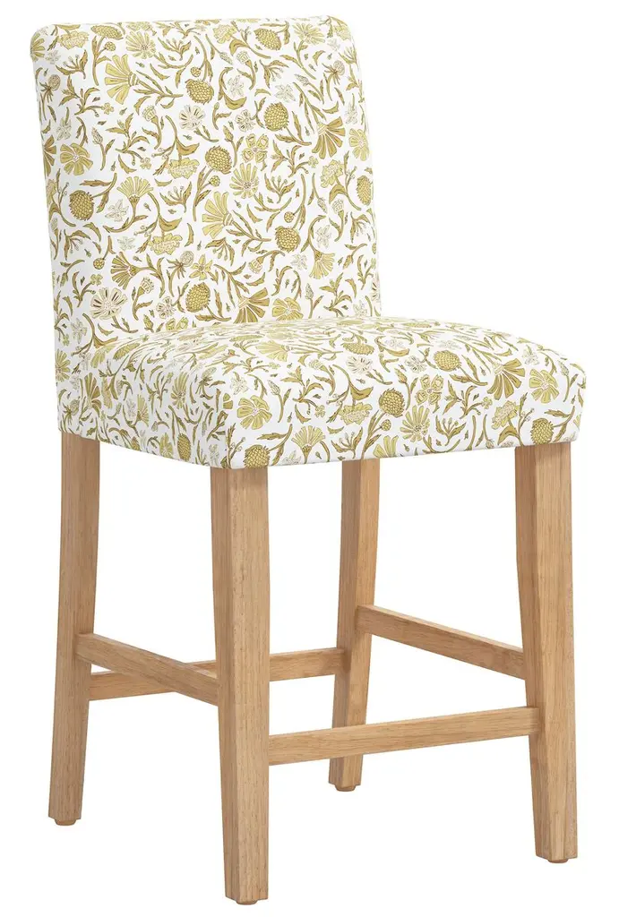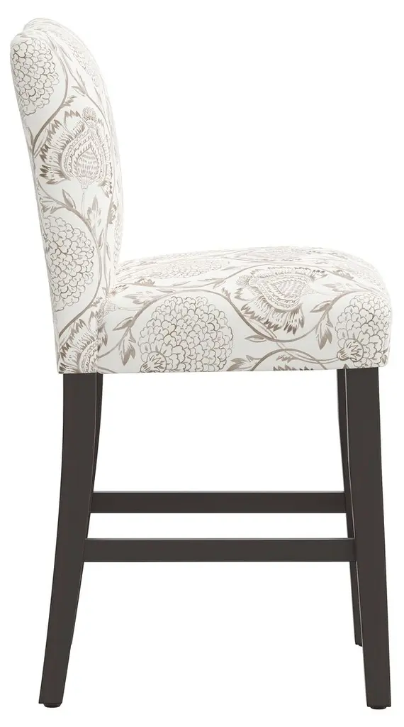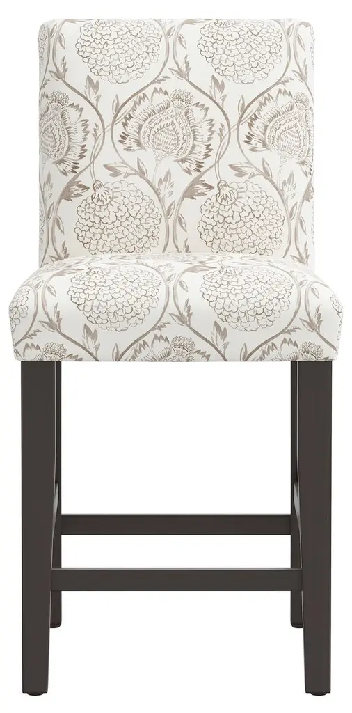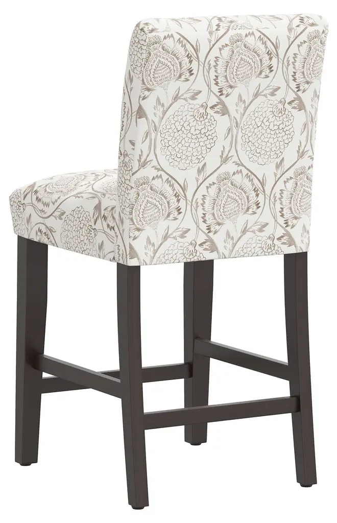 Exclusive to One Kings Lane: An oversize floral motif complements the tailored silhouette of this counter stool. Ample padding of the seat and the back along with a well-placed footrest ensure long-lasting comfort.