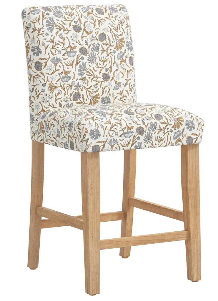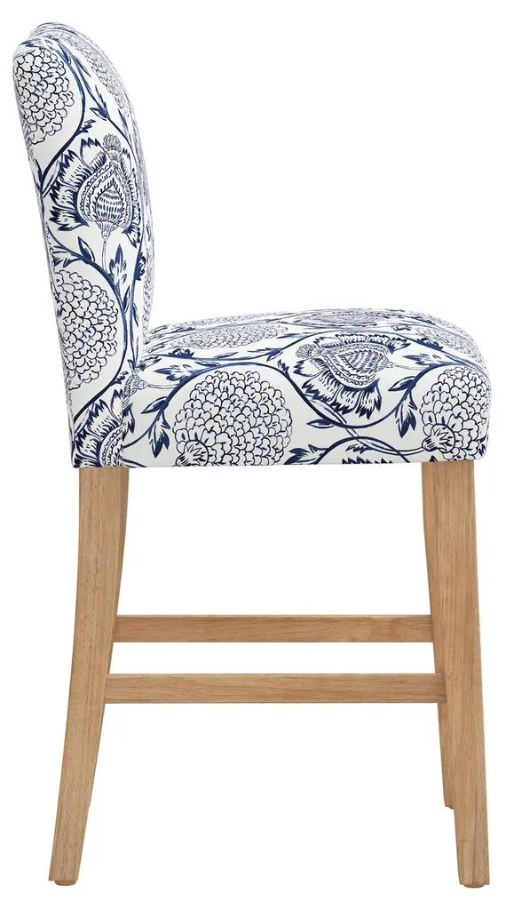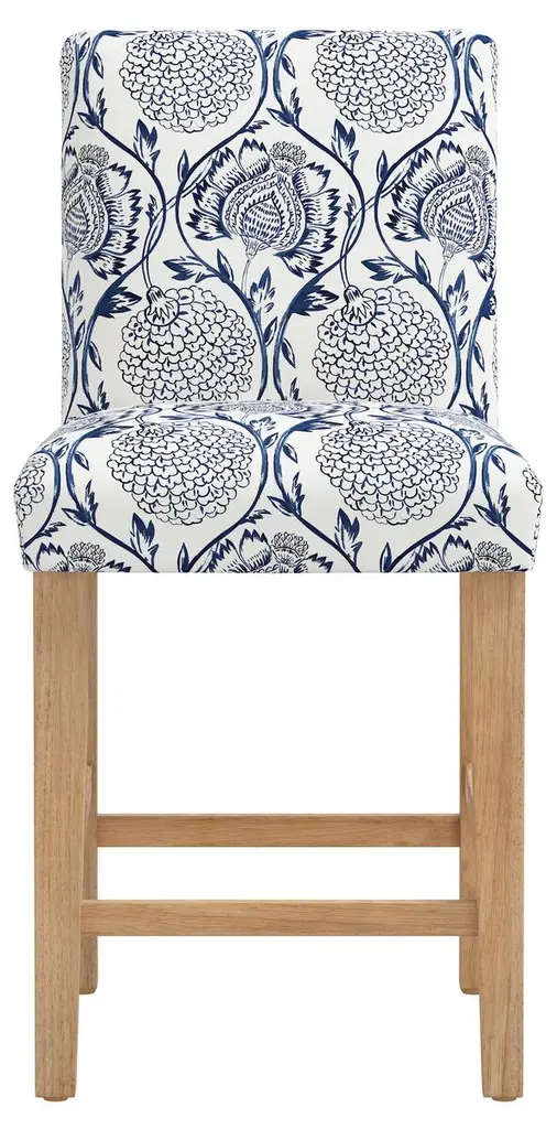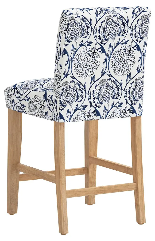 Exclusive to One Kings Lane: An oversize floral motif complements the tailored silhouette of this counter stool. Ample padding of the seat and the back along with a well-placed footrest ensure long-lasting comfort.