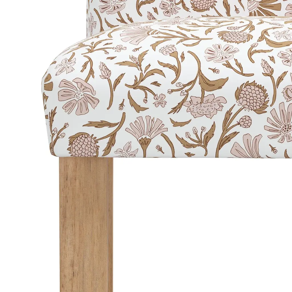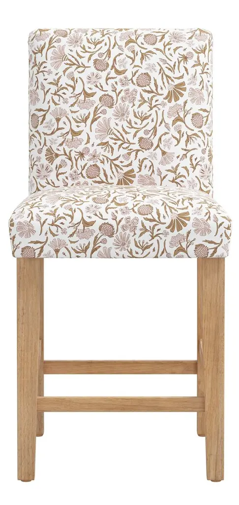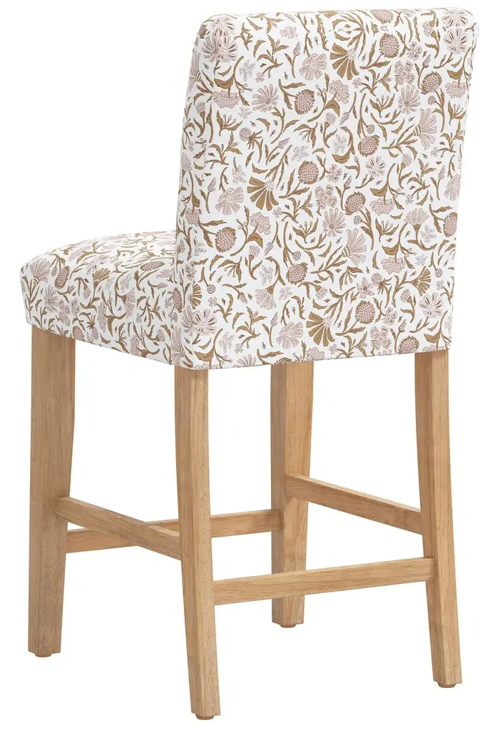 Exclusive to One Kings Lane: The floral motif of the upholstery, inspired by classic block prints, adds timeless allure to this clean-lined counter stool. Ample padding of both the seat and the back makes this stool as comfortable as it is chic.
