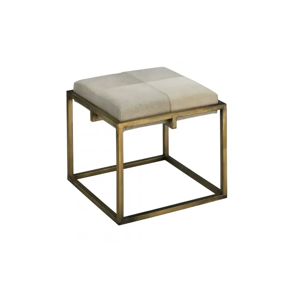 A soft hide seat and a sleek, architectural metal frame come together in the art-deco inspired stool. Featuring hand-forged legs and topped with padded natural hide seat for extra comfort. The high-contrast materials make for a striking accent pulled up to any counterspace.
