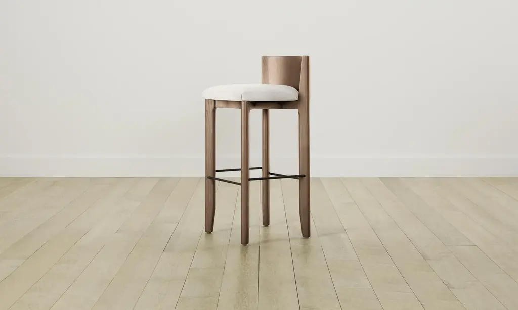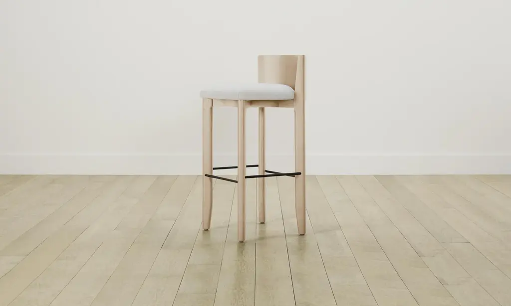 Designed with a white oak frame, the Shepherd Counter Stool plays with shape and material. With curved details in the structure for a classic feel and performance upholstery, the white oak counter stool invites you to relax and sit comfortably for a while.