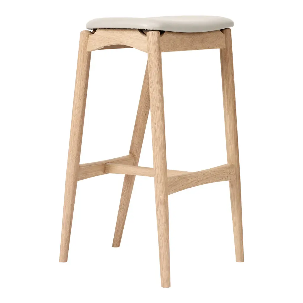 The new and refined barstool takes its origin from the timeless Sibast No 7 dining chair designed in 1953 by Helge Sibast and pays homage to the lines and the spirit of the Danish Modern movement from a contemporary perspective. Using the unique details from the Sibast No 7, such as the tapered back legs and the curved details, the dining chair has been transformed into the bold and generous Sibast No 7 bar stool. The upholstered seat together with the curved design makes the bar stool exceptionally comfortable. It comes in two heights and fits perfectly into private residences, kitchens as well as restaurants, bars and hotels.