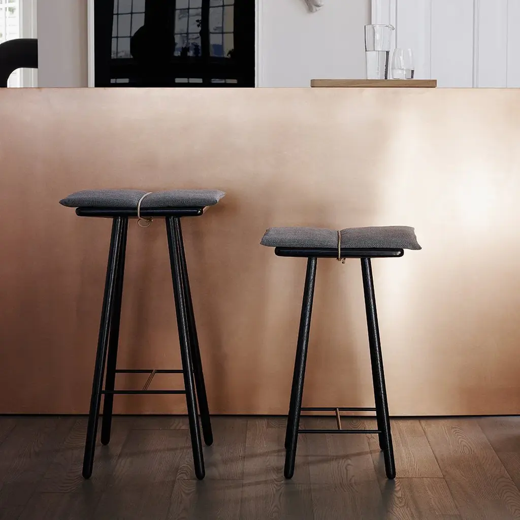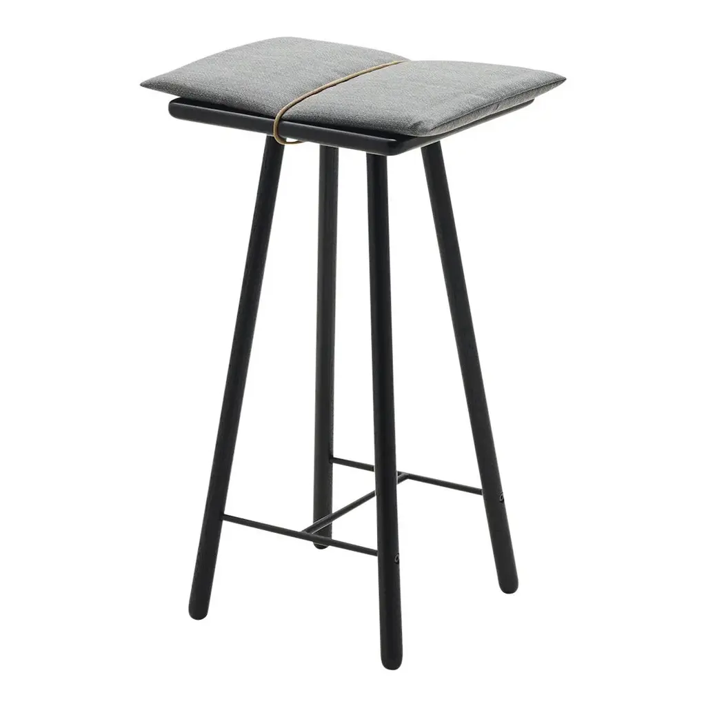 Have a seat on Georg Bar Stool, a stylish result of the meeting between Nordic sensuality and Japanese minimalism. The design is characterized by the slender wooden poles and soft surface, where a woolen cushion is kept in place by a braided leather strap. The legs are stabilized by metal H-frame that also serves as a footrest.
