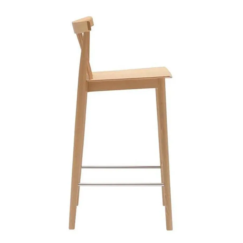 Traditional Japanese and Scandinavian design elements are brought together to create the Smile Collection. The design proves that lightness can be dynamic. Strength is obtained from the precise form and fluid structure, locked in a manner that makes this chair very resistant and durable. Smile offers stacking chairs, armchairs and stools with beech frame and back and oak or upholstered seat. Two different back options are spindle back or veneered panel back.