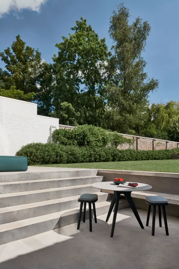 The Solid chair collection by Lionel Doyen, for example, was expanded with one stool (47 cm), one counter stool (61 cm) and one barstool with a backrest (61 cm). All are available in teak nero and natural teak. Durable down to the smallest detail, they embody Doyen’s signature balance between technological innovation and authenticity. The brushed teak nero finish adds a muchcoveted sense of sophistication. In its essence, Solid is pure power, marked by extensively crafted wood and carefully executed details. The plush seating molds itself to your body, for a pure and unique feeling of luxury.Lionel’s Solid barstools are ideal for combination with the Torsa tables in natural teak and teak nero. Manutti presents a highdining, 90-cm version of its dining and bistro tables that matches perfectly with the 61-cm Solid counter stool and barstool. The result is a cosy and comfortable setting for dinners, lunches and late-night talks that is perfect for hotels and offices or residential spaces.Fashioned from natural teak and brushed teak nero, the SOLID collection is both an invitation and a bold statement. The design of the chairs, stools and bar stools perfectly balances technological innovation and authentic craftsmanship. Its graceful wooden frame and delicately crafted plush seating simultaneously suggest solidity and comfort – a sensation that is further amplified by its sensual shape, which molds to the body.