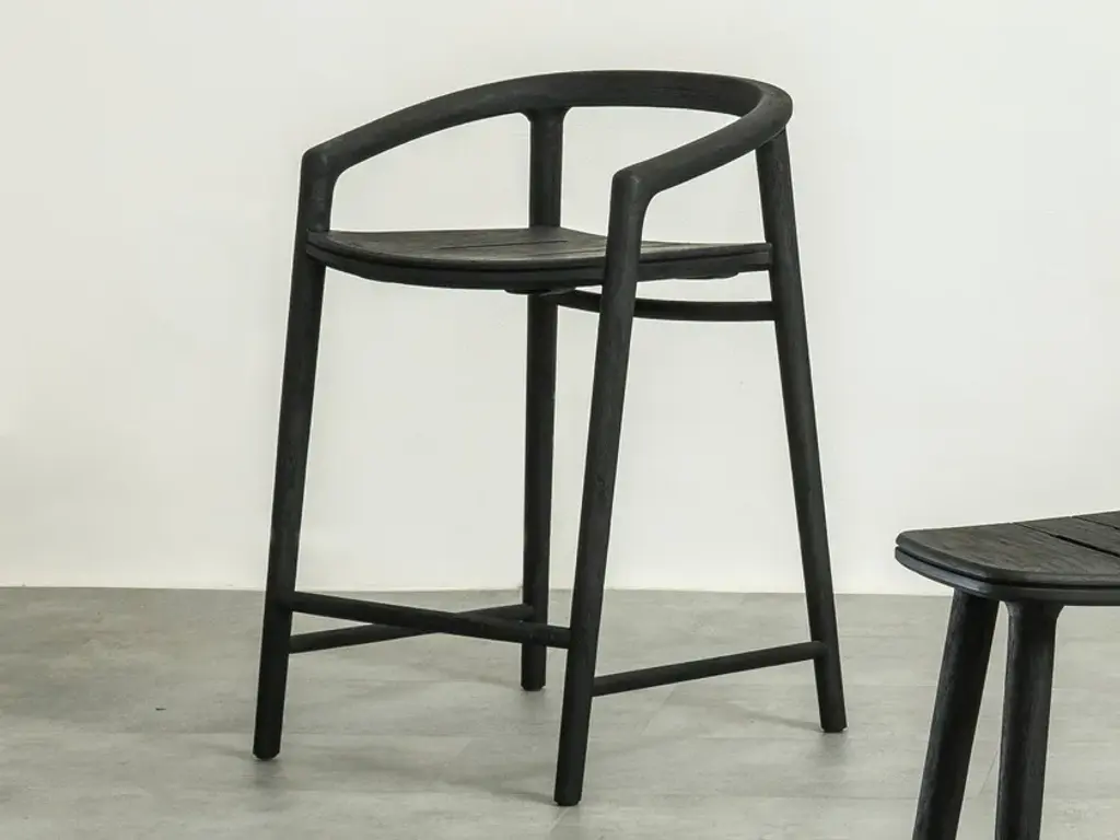 The Solid chair collection by Lionel Doyen, for example, was expanded with one stool (47 cm), one counter stool (61 cm) and one barstool with a backrest (61 cm). All are available in teak nero and natural teak. Durable down to the smallest detail, they embody Doyen’s signature balance between technological innovation and authenticity. The brushed teak nero finish adds a muchcoveted sense of sophistication. In its essence, Solid is pure power, marked by extensively crafted wood and carefully executed details. The plush seating molds itself to your body, for a pure and unique feeling of luxury.Lionel’s Solid barstools are ideal for combination with the Torsa tables in natural teak and teak nero. Manutti presents a highdining, 90-cm version of its dining and bistro tables that matches perfectly with the 61-cm Solid counter stool and barstool. The result is a cosy and comfortable setting for dinners, lunches and late-night talks that is perfect for hotels and offices or residential spaces.Fashioned from natural teak and brushed teak nero, the SOLID collection is both an invitation and a bold statement. The design of the chairs, stools and bar stools perfectly balances technological innovation and authentic craftsmanship. Its graceful wooden frame and delicately crafted plush seating simultaneously suggest solidity and comfort – a sensation that is further amplified by its sensual shape, which molds to the body.