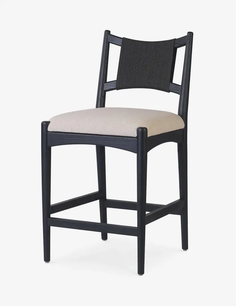The Sonoma counter stool offers versatility and elegance with its refined design. Curved lines bring a modern edge to the wood frame with a wrapped cord back for a touch of texture. The stool's linen-blend seat offers natural fiber strength for everyday comfort.