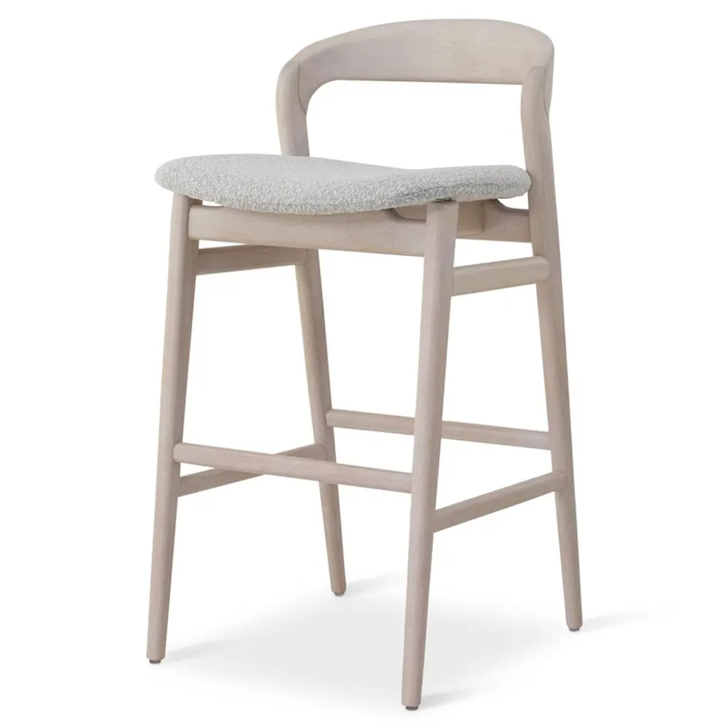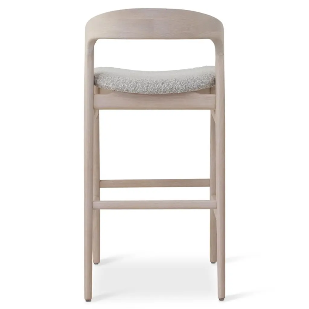 Sophie Modern Classic Cream Upholstered Boucle Light Brown Wood Counter Stool