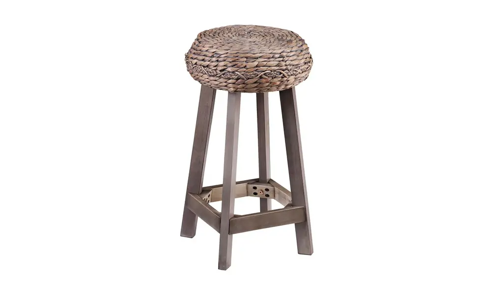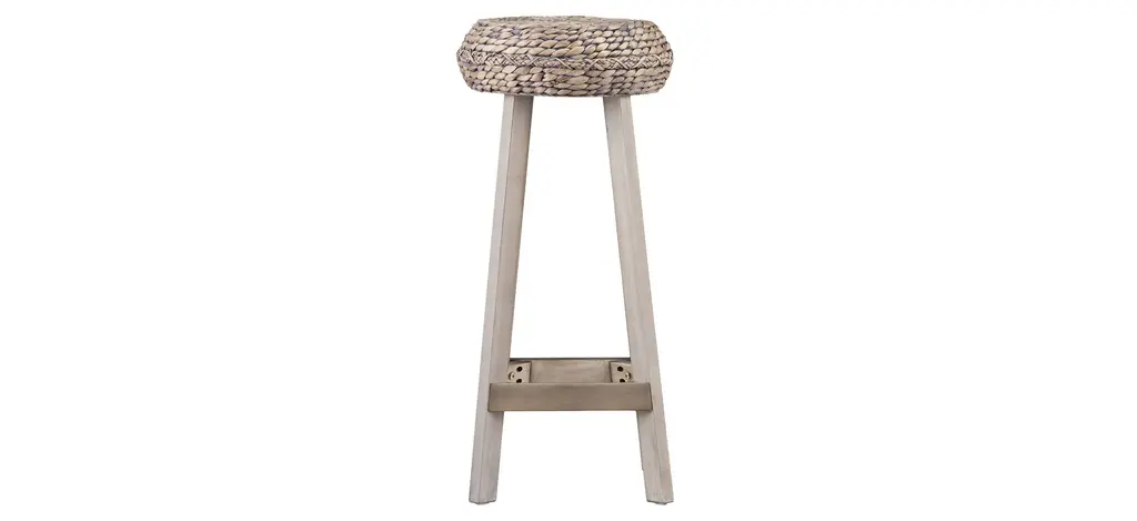Soft coastal style comes to breakfast with the Southsea Counter Stool Set of 2. Gray-washed natural fibers weave a mesmerizing pattern into the round seat, mingling with the weathered gray base for an eclectic, monochromatic look. Round out spare seating with these backless counter stools in an eat-in kitchen, dressing area, or home office. Weathered, gray-washed finish, and natural hyacinth will vary adding unique style.