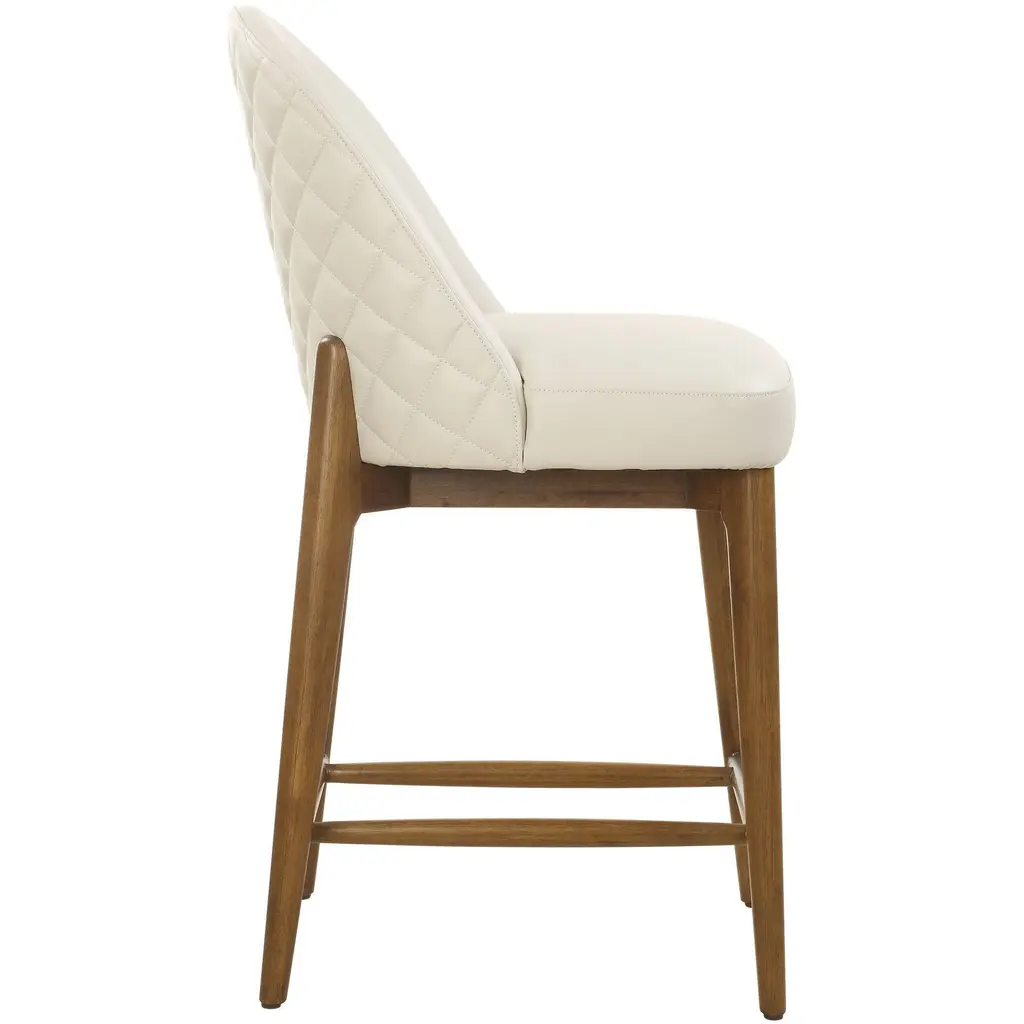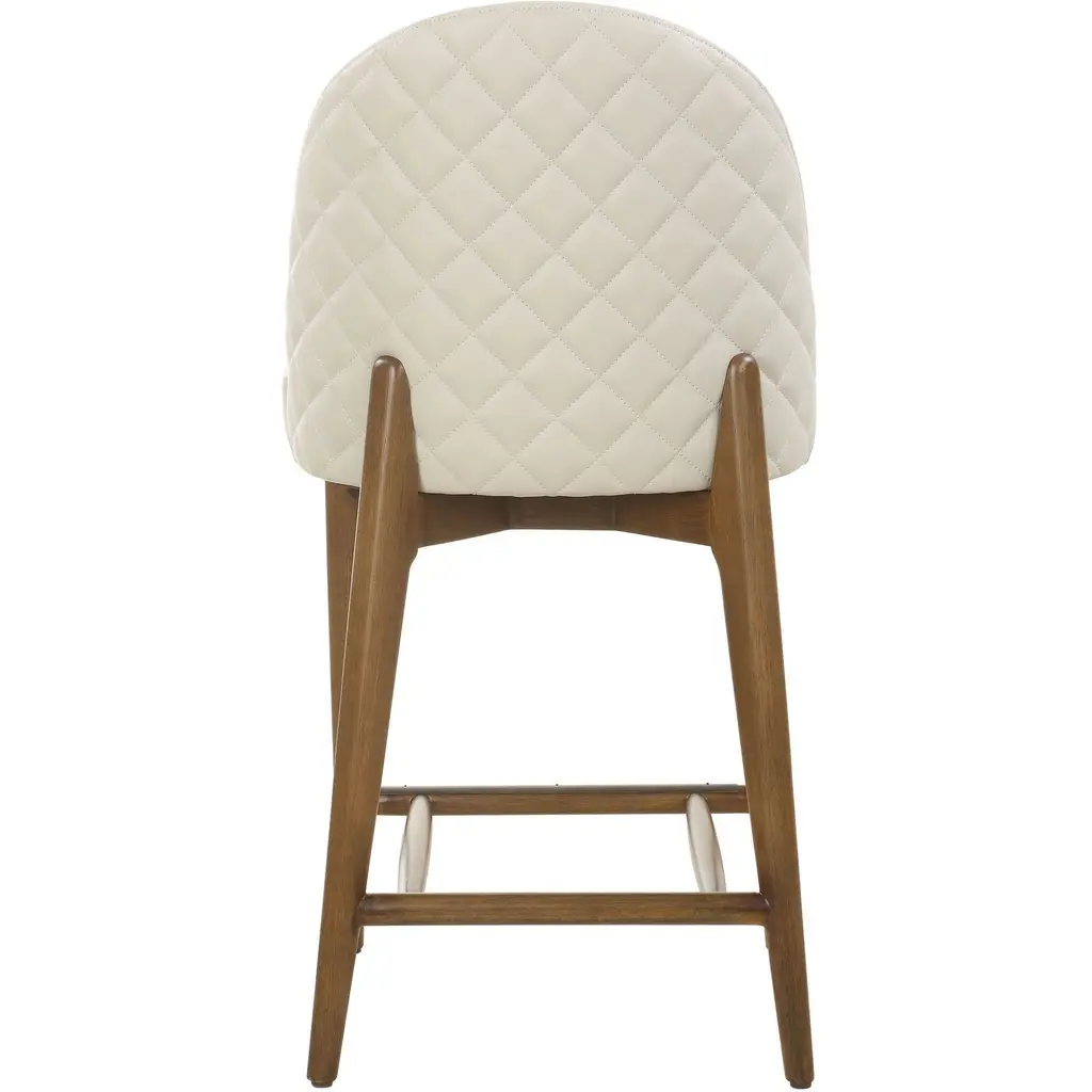 Stunning From All Angles, The Stitches Counter Stool Features A Diamond Tufted Back Upholstered In Rich Ecru Pebbled Faux Leather That Are Encapsulated By Oak Legs In Warm Walnut.