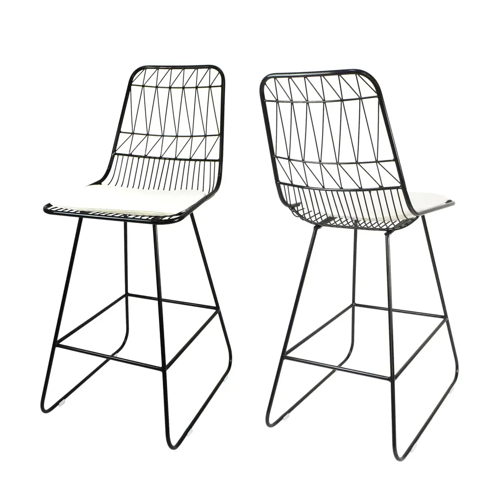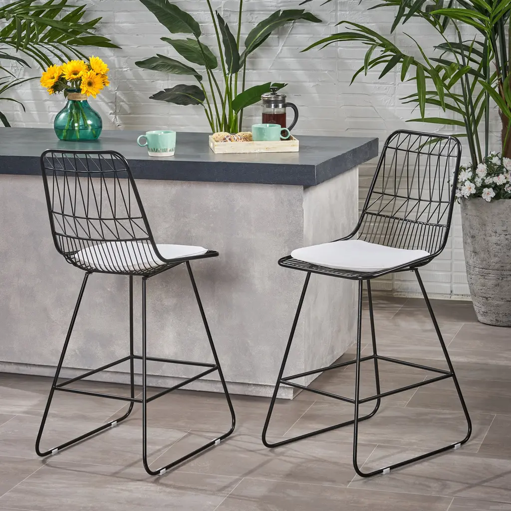 This counter stool set is a remarkable addition to any home. It combines modern design with practicality, creating a perfect blend of style and functionality. The simple wire build and geometric design not only look chic but also provide a unique aesthetic. The water-resistant cushions make cleaning effortless, ensuring a clean and hygienic seating area. The durable iron frame guarantees long-term use, while the assembly process is straightforward, allowing you to enjoy these stools quickly. It's an ideal choice for those seeking to upgrade their home decor and functionality.