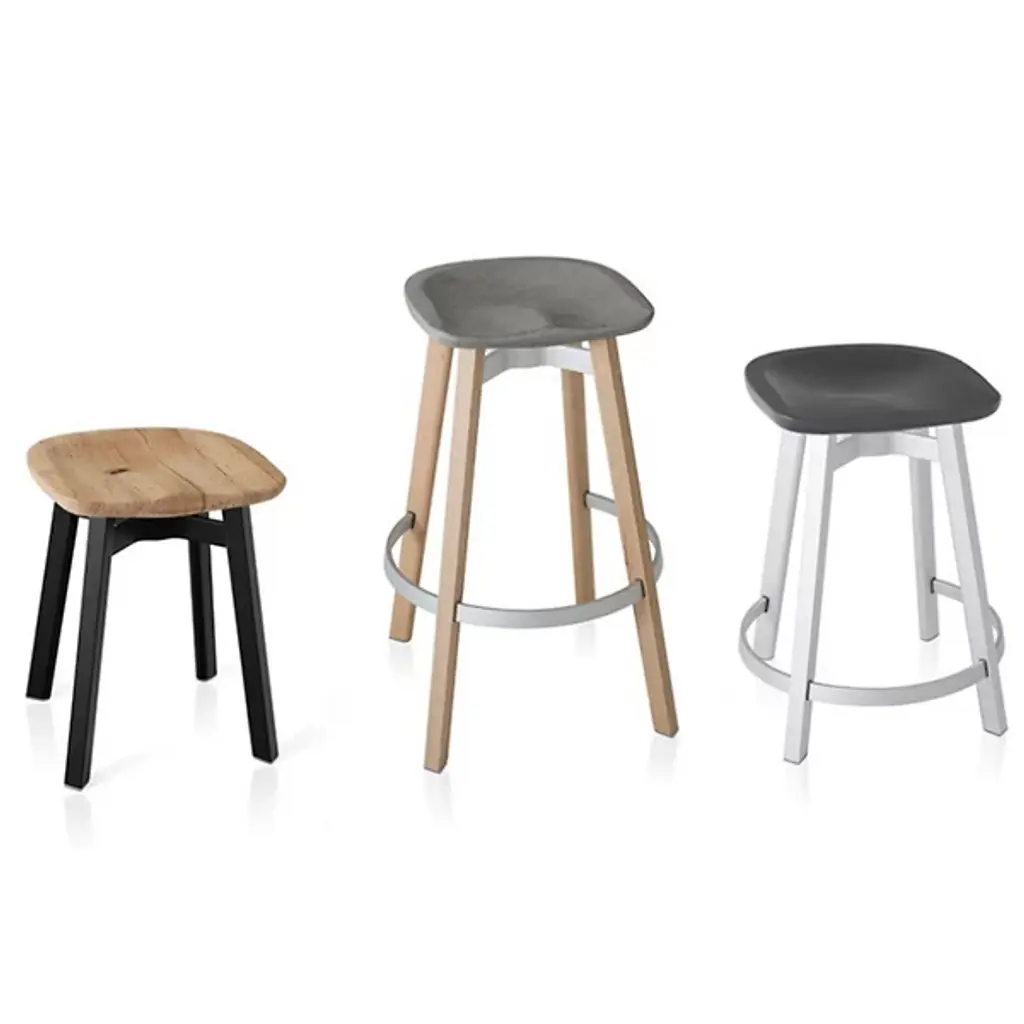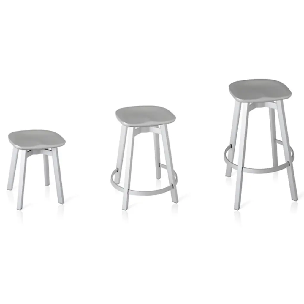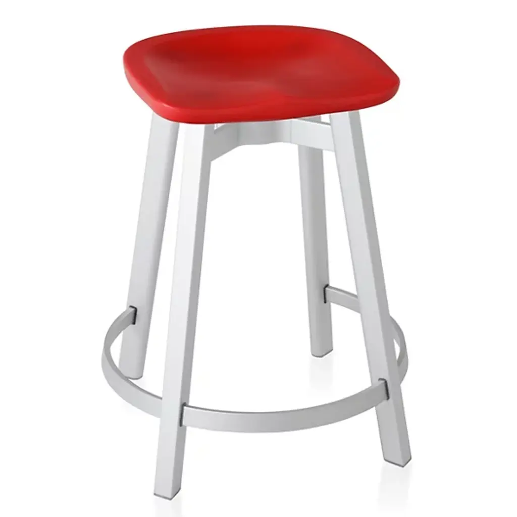The Su Stool, Plastic Seat by Emeco is another example of the marriage between functionality and design within the Su Collection. As an ergonomic counter stool, Su features a molded seat, eco-friendly materials, and a foot base as an optional sitting position. In the dining area or outdoor spaces, Su is a dynamic counter stool.