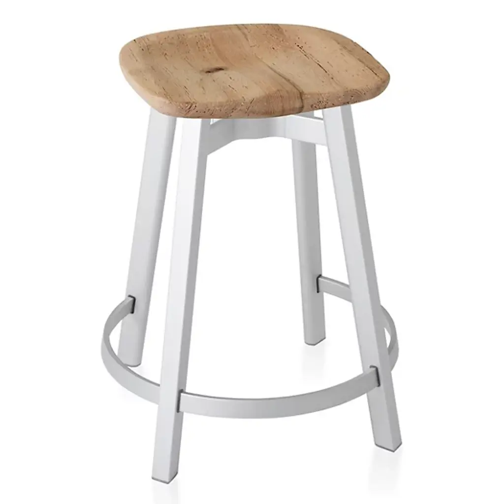 The Su Stool, Wood Seat features a sustainable 4-legged base of which elevates a beautifully molded oak seat. Su's construction was inspired by the Japanese aesthetic of simple design. In timeless and contemporary spaces, the counter stool adapts well to surrounding furnishings.