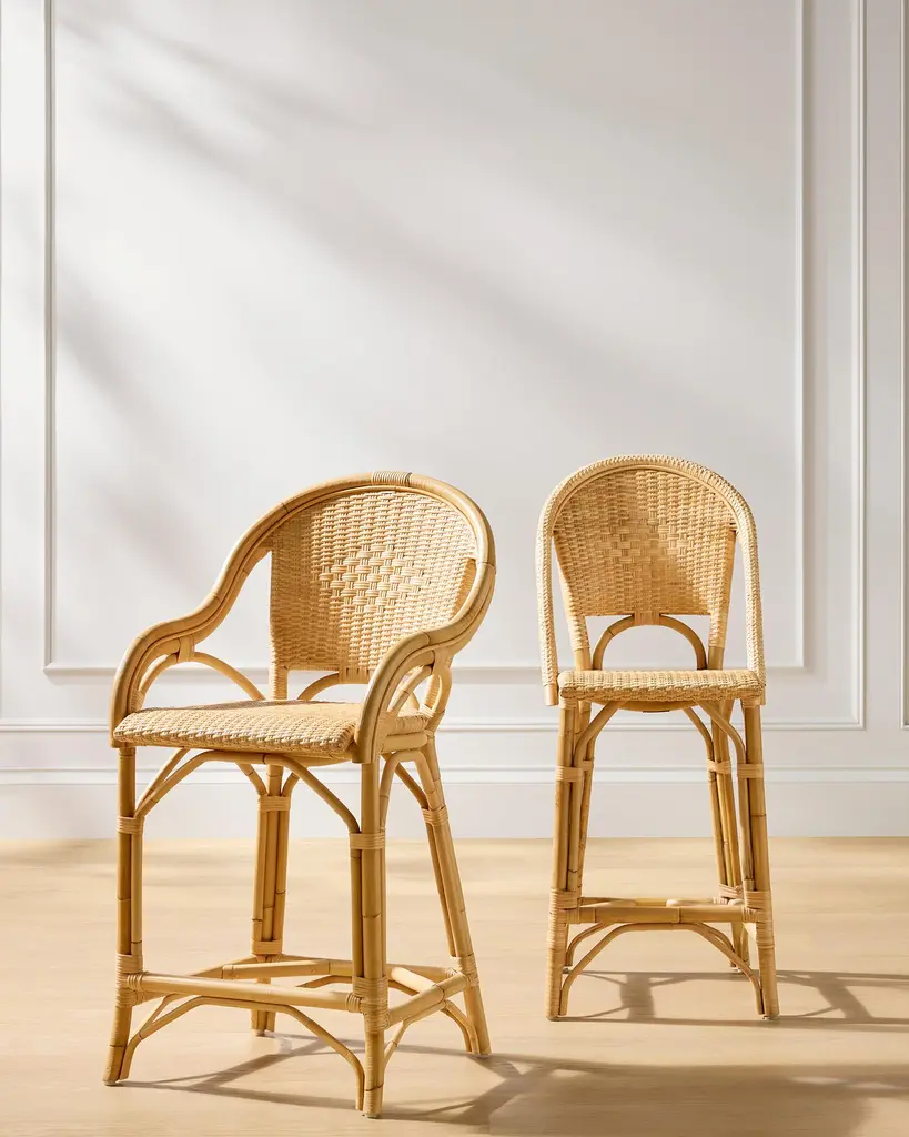 Each chair is a story — a celebration of its inherent character. Inspired by the iconic silhouette of the Parisian bistro seats, every rattan frame is bent and shaped by hand. Each bears marks of distinction — from harvest, an artisan touch, and nature’s material maturing in time.