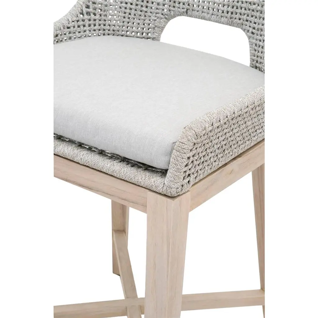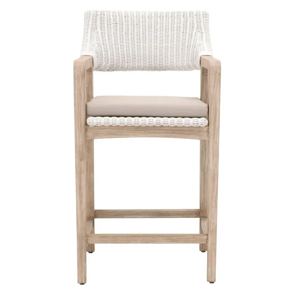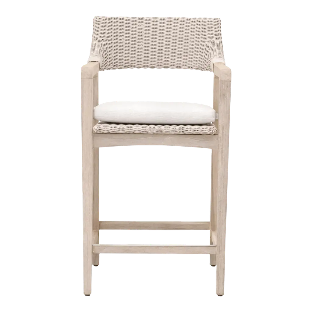 Theodore Coastal Beach Taupe Woven Cushion Solid Grey Teak Outdoor Counter Stool