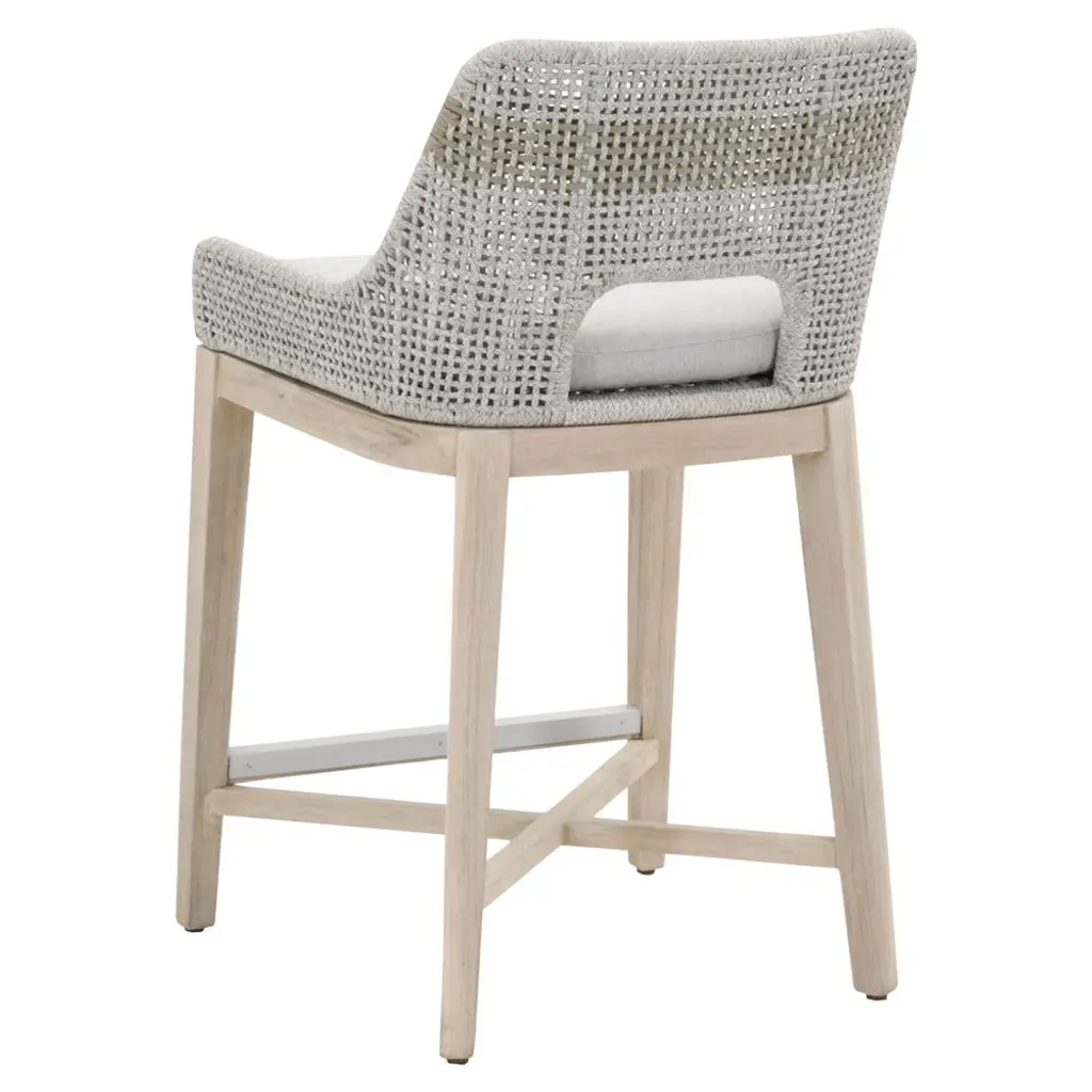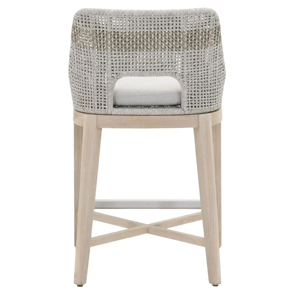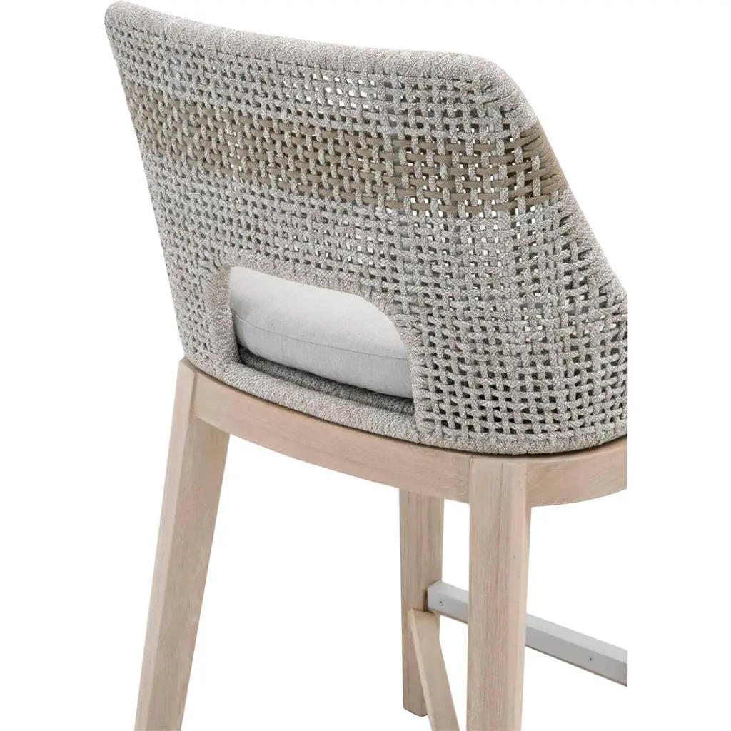 Theodore Coastal Beach Taupe Woven Cushion Solid Grey Teak Outdoor Counter Stool
