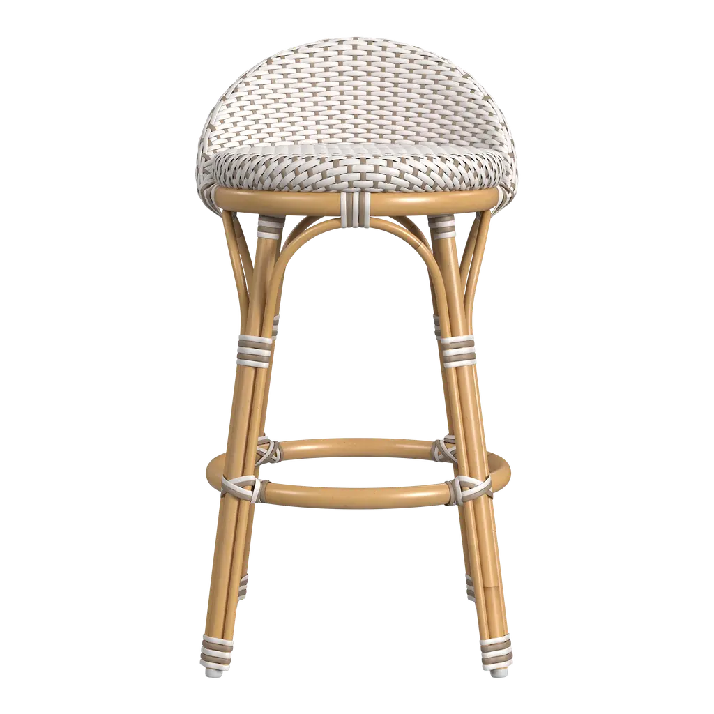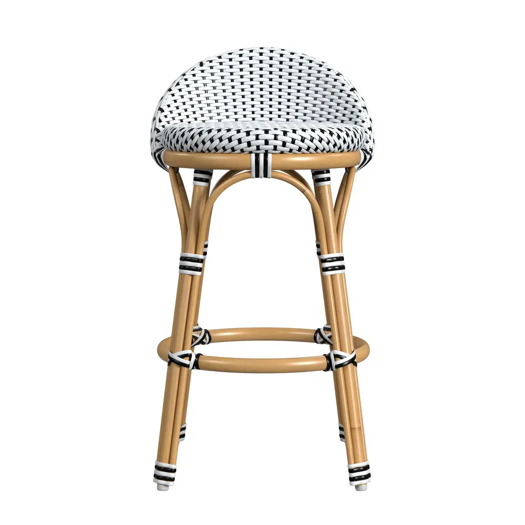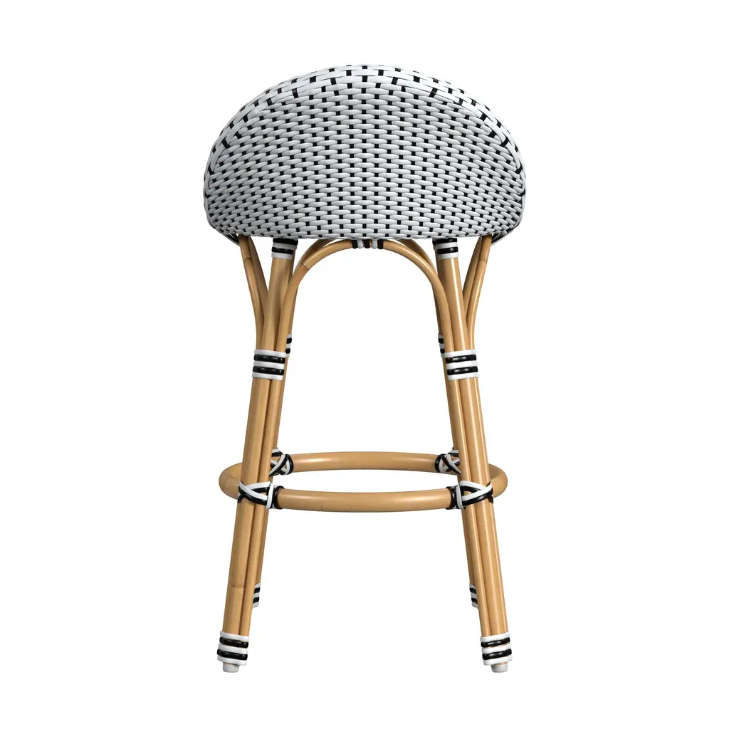 Tobias Outdoor Rattan & Metal Low Back Counter Stool, Black & White