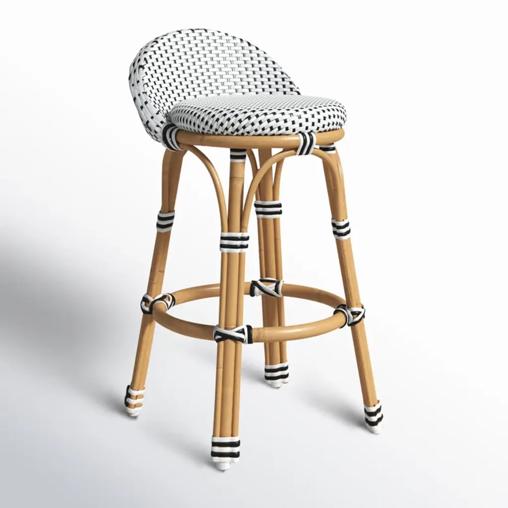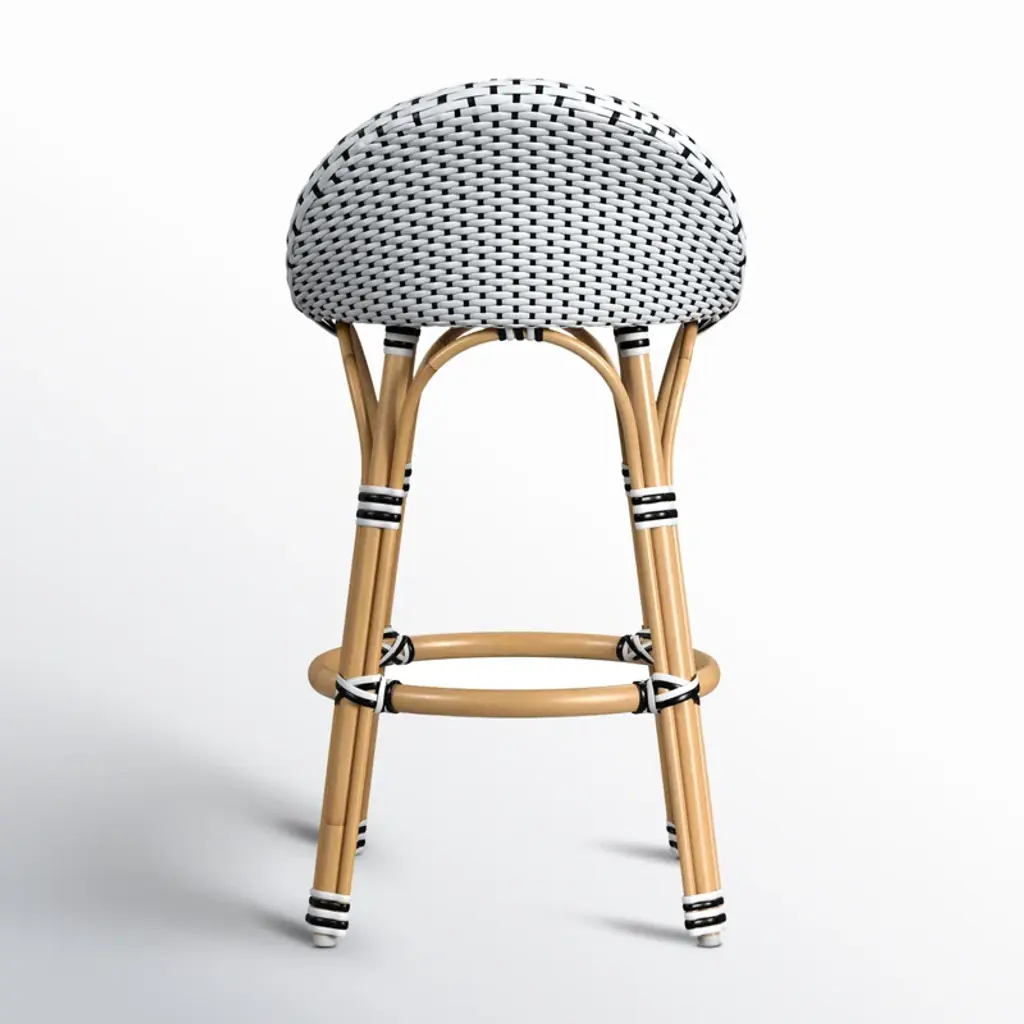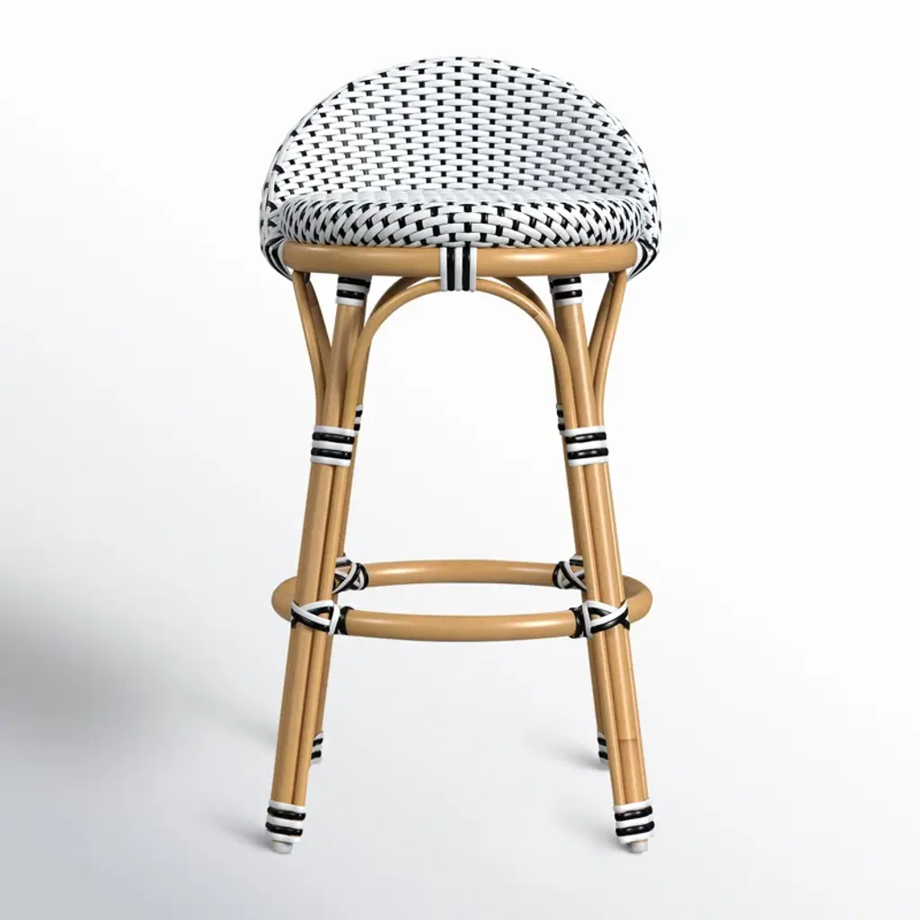 Tobias Outdoor Rattan And Metal Low Back Counter Stool