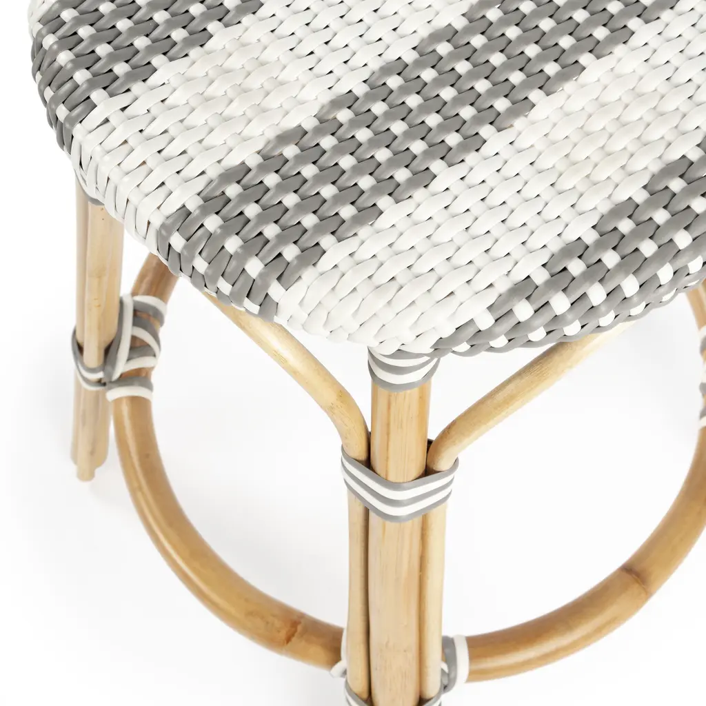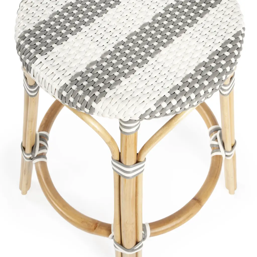 Butler Specialty Company Tobias Rattan Round 24" Counter Stool, Gray and White Stripe