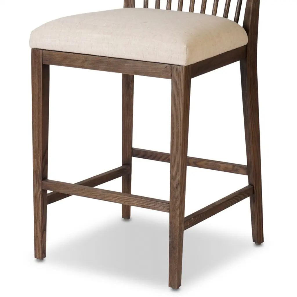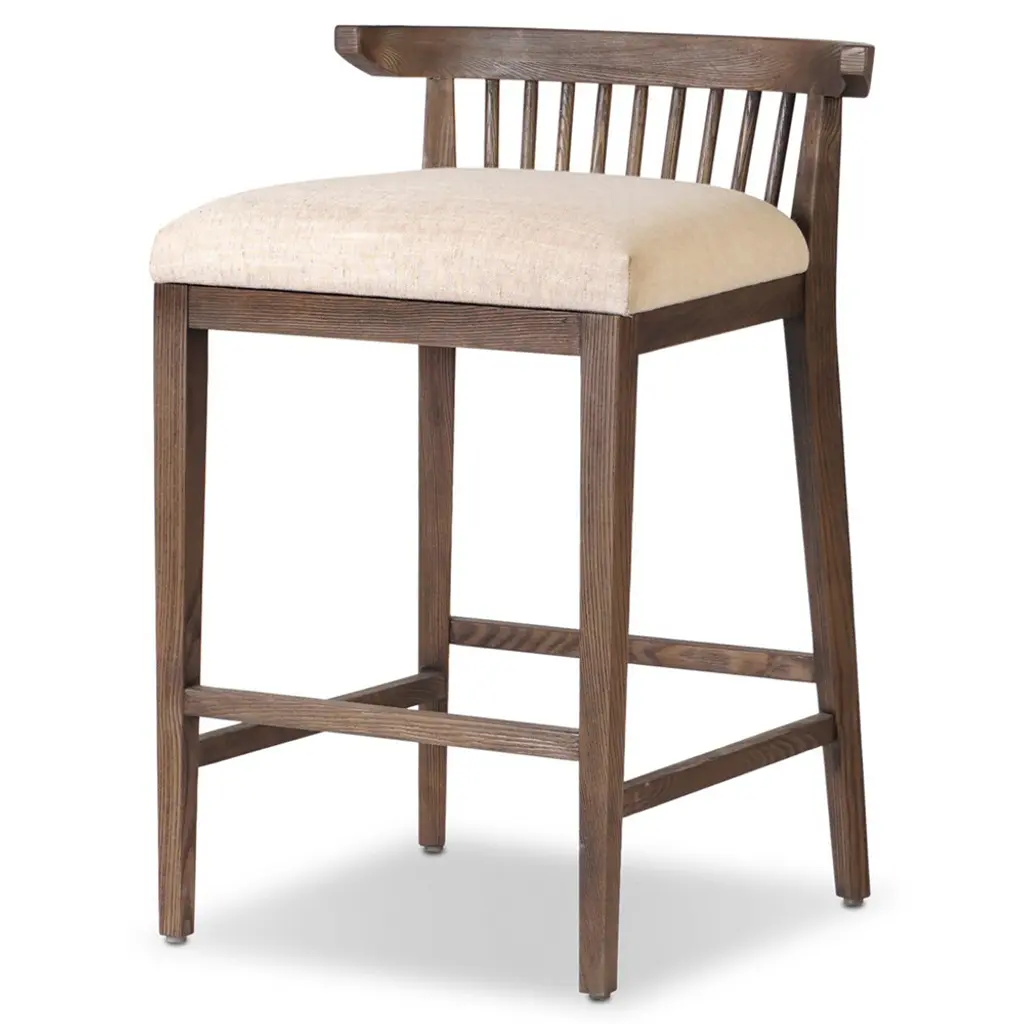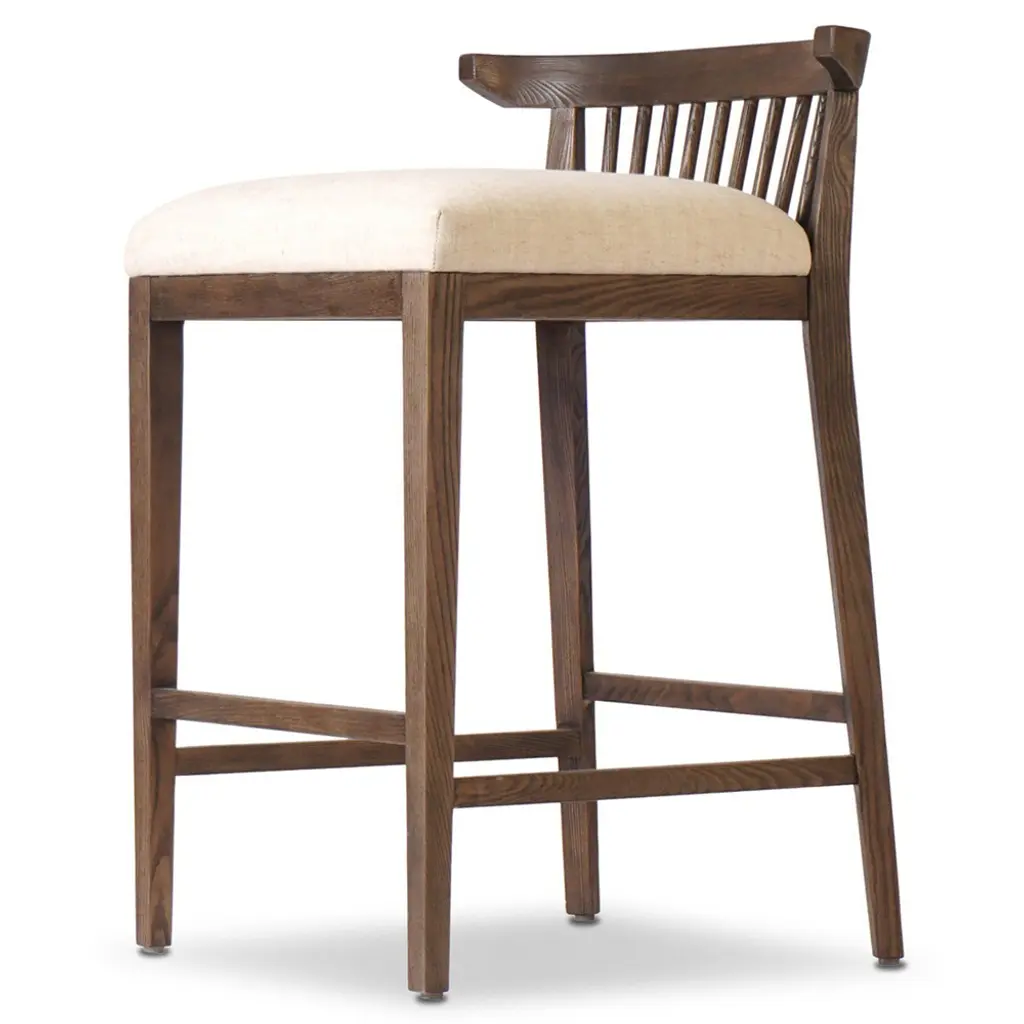 Tobin Updated Traditional Off White Upholstered Brown Wood Counter Stool