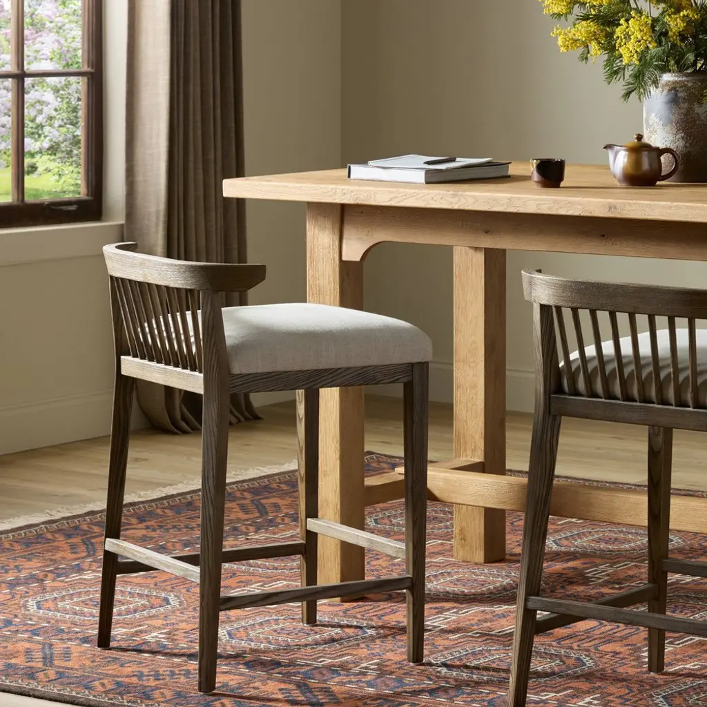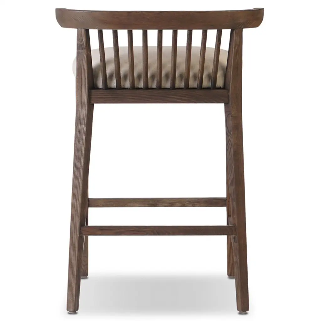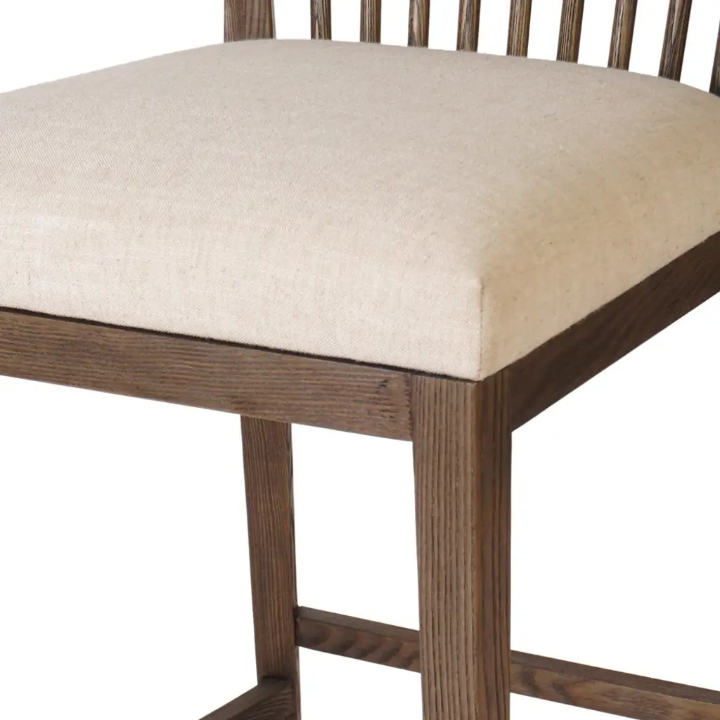 Tobin Updated Traditional Off White Upholstered Brown Wood Counter Stool