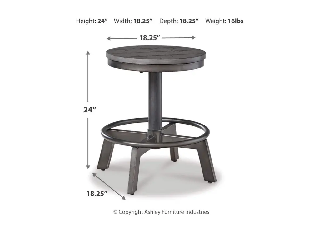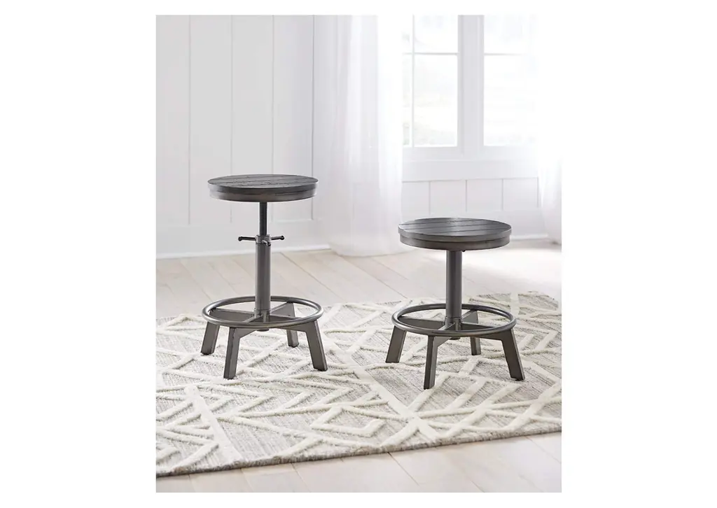 Make your home the hub for cool vibes with the Torjin stool. Its two-tone finish scheme of weathered gray and aged gunmetal is full of urban industrial swagger. The stool's adjustable height is accommodating for you and your guests. Add it behind your sofa with a long counter table for a dapper eating or working space. Weight 16.000 lbs. (7.2kgs.)