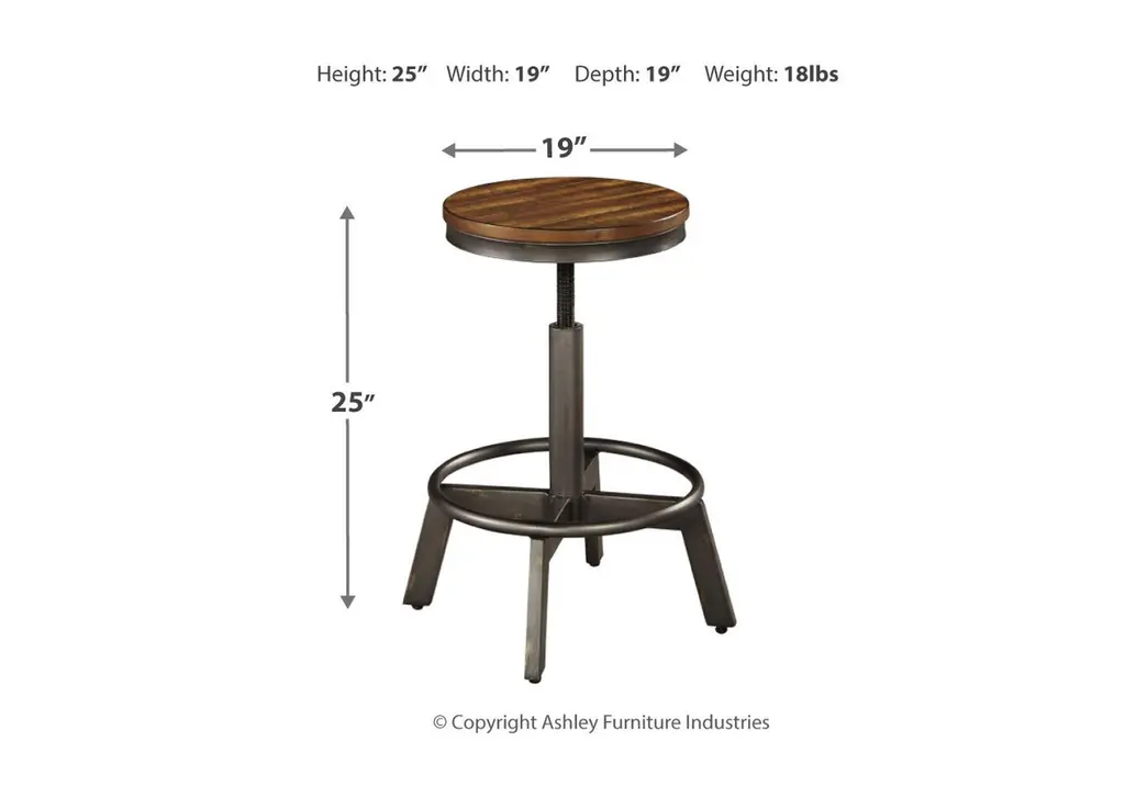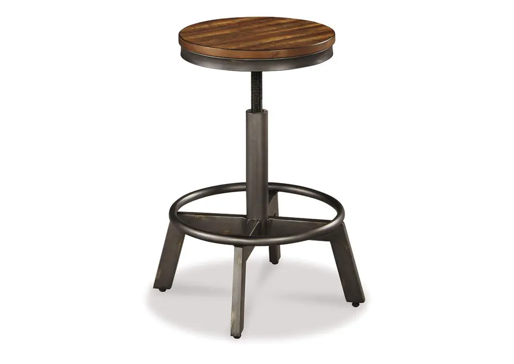 Make your home the hub for cool vibes with the Torjin stool. Two-tone finish scheme of distressed warm brown and aged gunmetal is full of urban industrial swagger. Adjustable height is accommodating for you and your guests. Add it behind your sofa with the Torjin long counter table for a dapper eating or working space. Weight 16.000 lbs. (7.2kgs.)
