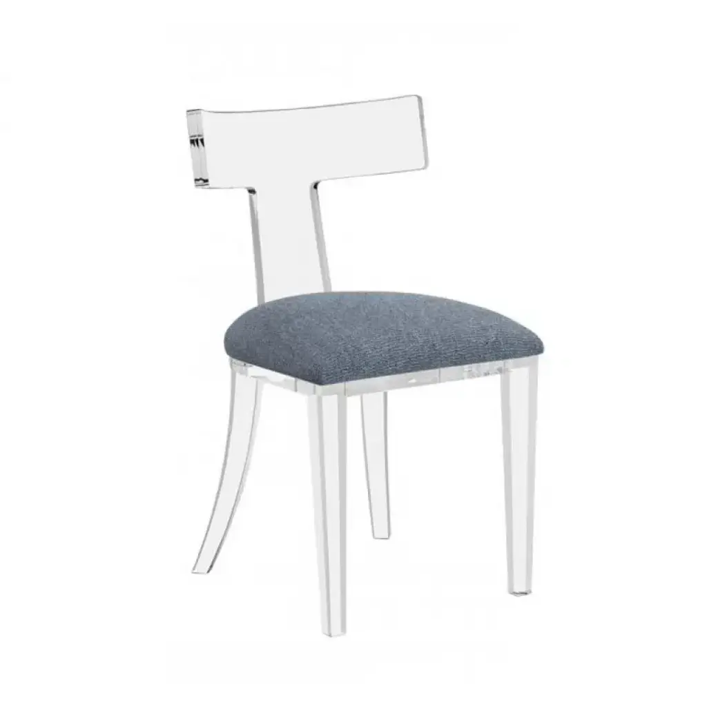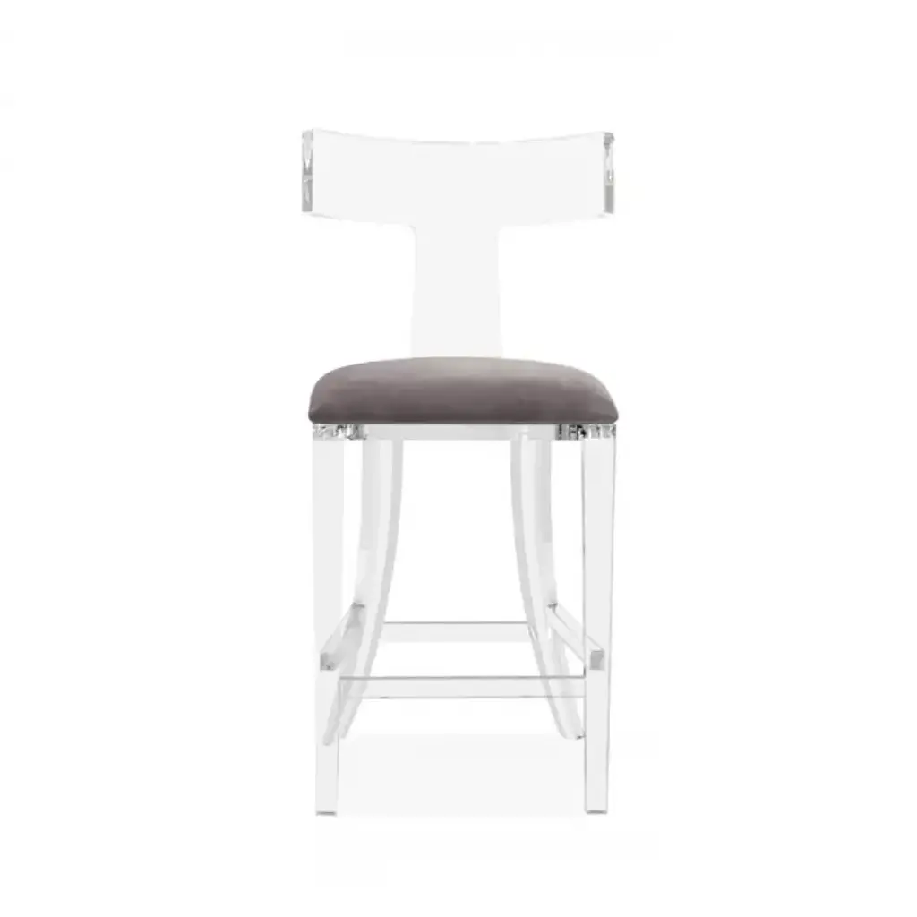 Pairing on-trend acrylic with a grey velvet seat, the Tristan Klismos Counter Stool delivers a fabulous take on a classic silhouette.