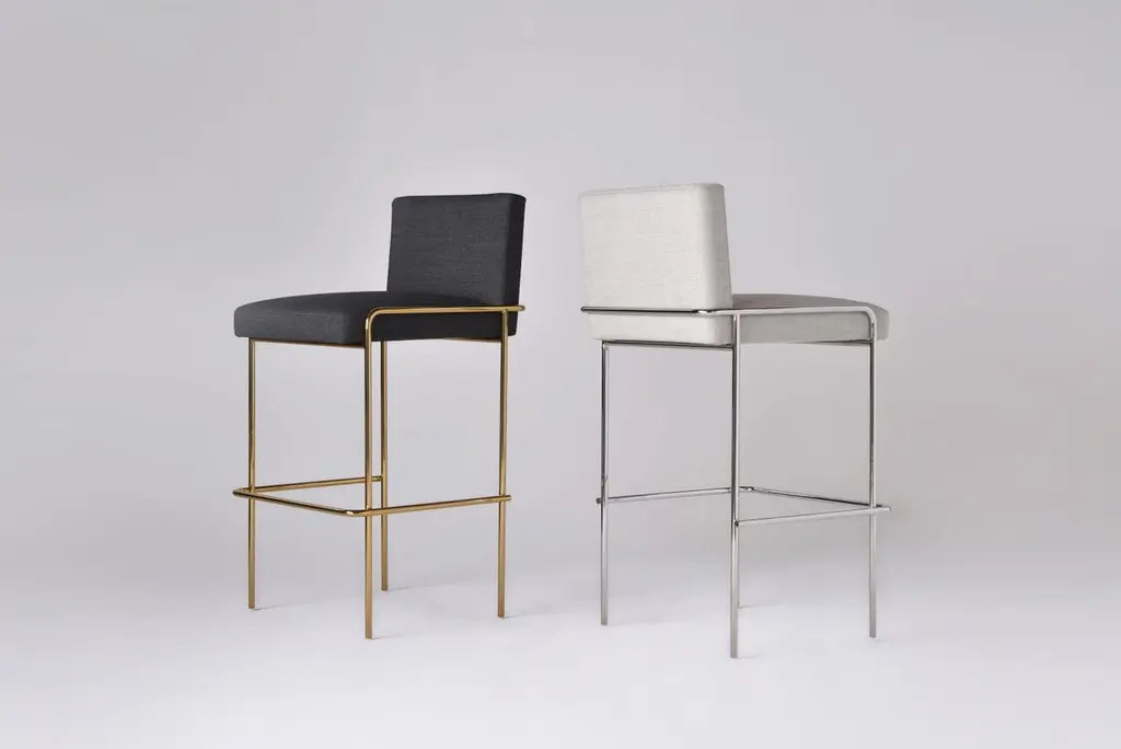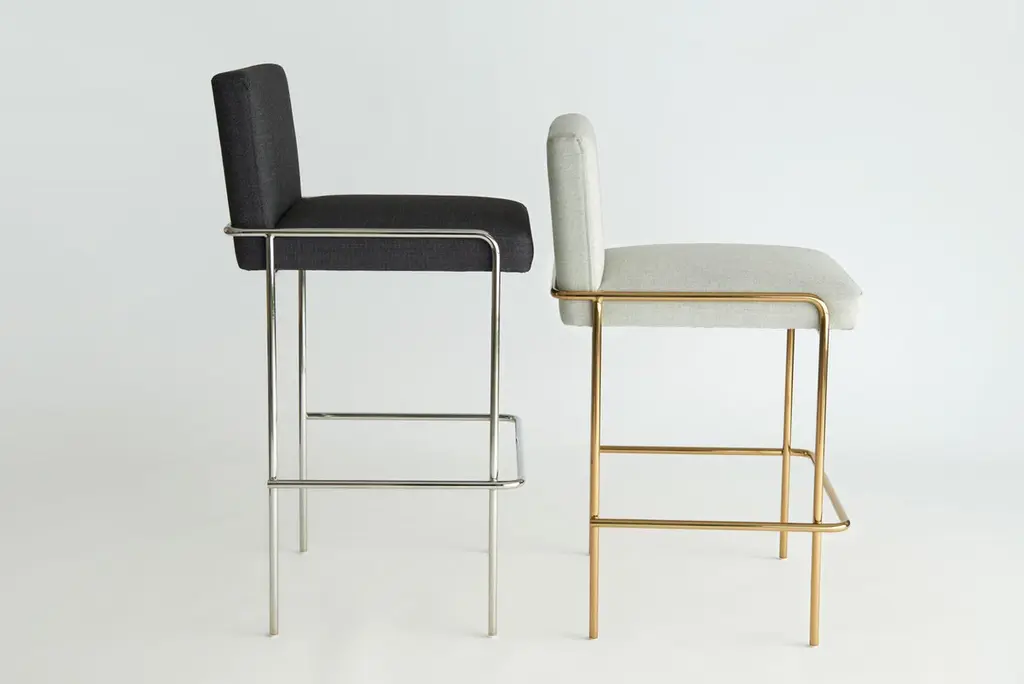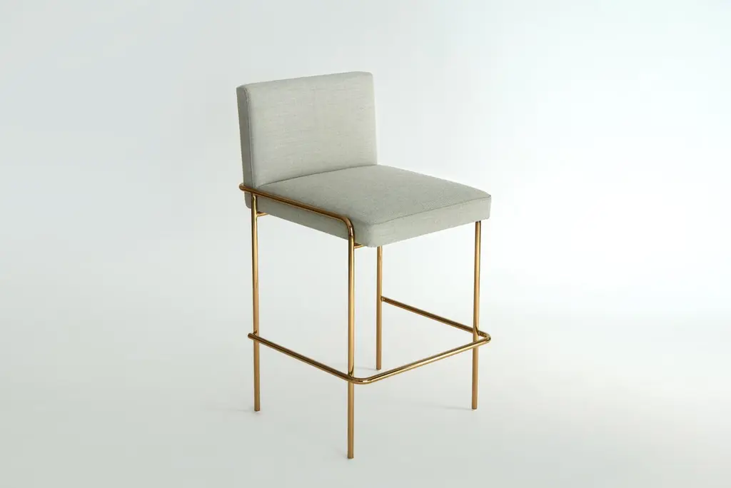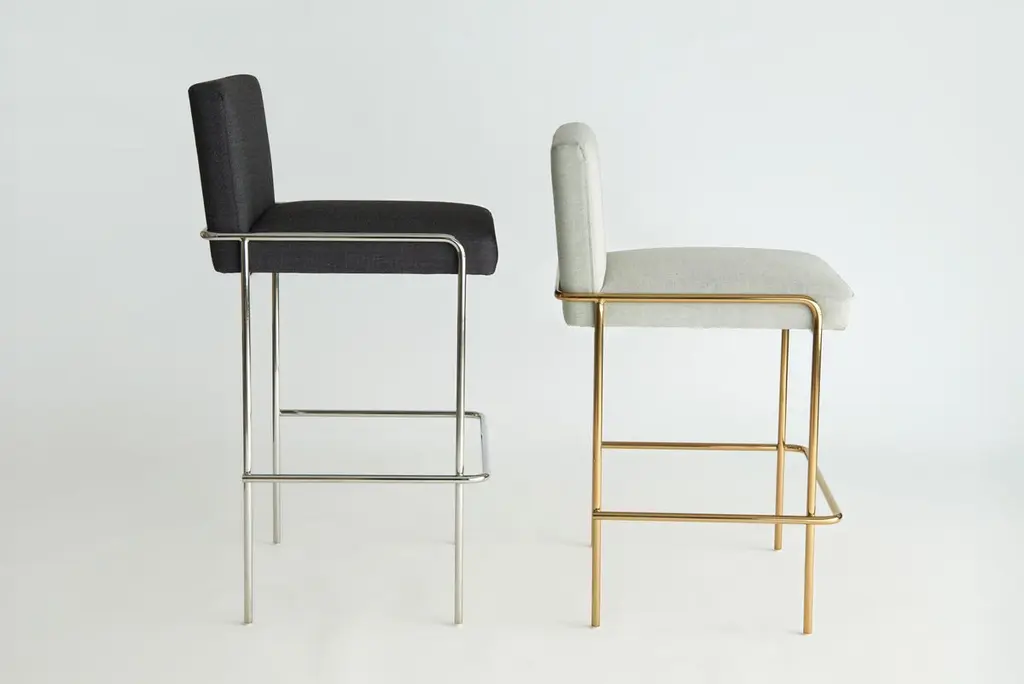 Trolley Counter Stool by Phase DesignDimensions: D 54 x W 52.1 x H 88.9 cm. Seat Height: 63.5 cm.Materials: Upholstery and smoked brass. Fabric price not included.Solid steel bar available in a smoked brass, polished chrome, burnt copper, or powder coat finish with upholstered top. Powder coat finishes are available in custom colors. Upholstery may be sourced in Customer Own Material (COM), Customer Own Leather (COL), or in Phase Design's suggested fabrics and leathers. Prices may vary. Please contact us.This backed bar stool combines the Trolley family’s tasteful curved metal work with a formal stance. Poised and purposeful, the Trolley Counter and Bar Stools make taking a seat at the bar, a long-term proposition.Autodidact award-winning designer Reza Feiz has always been drawn to the strength in simplicity. Lured to Southern California by its inventive, creative spirit, he quickly discovered his true calling among the vast community of creators and artisans whose skills and ingenuity expertly transform imagination into reality.Inspired by Los Angeles’ iconic landscape and the compelling beauty of the places and spaces he encountered, he envisioned furniture, lighting and tabletop accessories, fabricating them from contemporary materials with the help of a tightly knit coterie of craftspeople.The resulting restrained yet revolutionary pieces have garnered enthusiasm from an international audience.He’s been lauded as “An American designer who influences world design”, a “Style Pioneer” and “One of a group of select young designers who represent the leading edge of discovery in design.” Architectural Digest’s Mayer Rus noted that his “wide-ranging collections make a strong case for the enduring appeal of restrained modern design.” Surface Magazine raved that he “imbues his work with a 21st-century edge. His astute sense of restraint keeps the designs relevant in a constantly evolving industry, without needing to subscribe to trends.”“Reza Feiz imbues his work with a 21st-century edge. His astute sense of restraint keeps the designs relevant in a constantly evolving industry, without needing to subscribe to trends.”