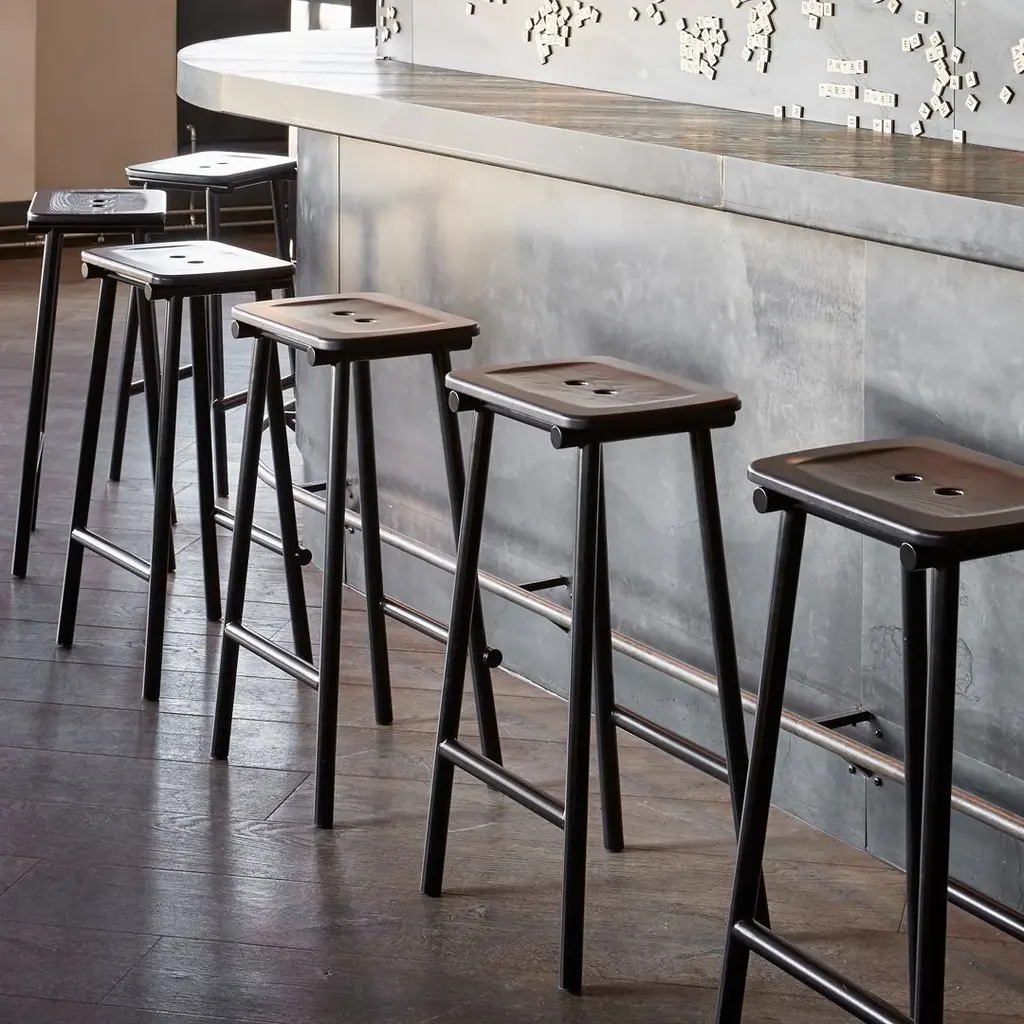 “Tubby yet elegantâ€� is the way to describe the TUBBY TUBE stool collection of three heights. A unique composition of bulky round tubes with a wooden seat or a chunky soft seat pad – a play on volume meeting a tubular frame that creates a classic yet contemporary expression. Place the stools by your kitchen counter, in a bar or restaurant or wherever you need comfortable yet elegant seating spaces.