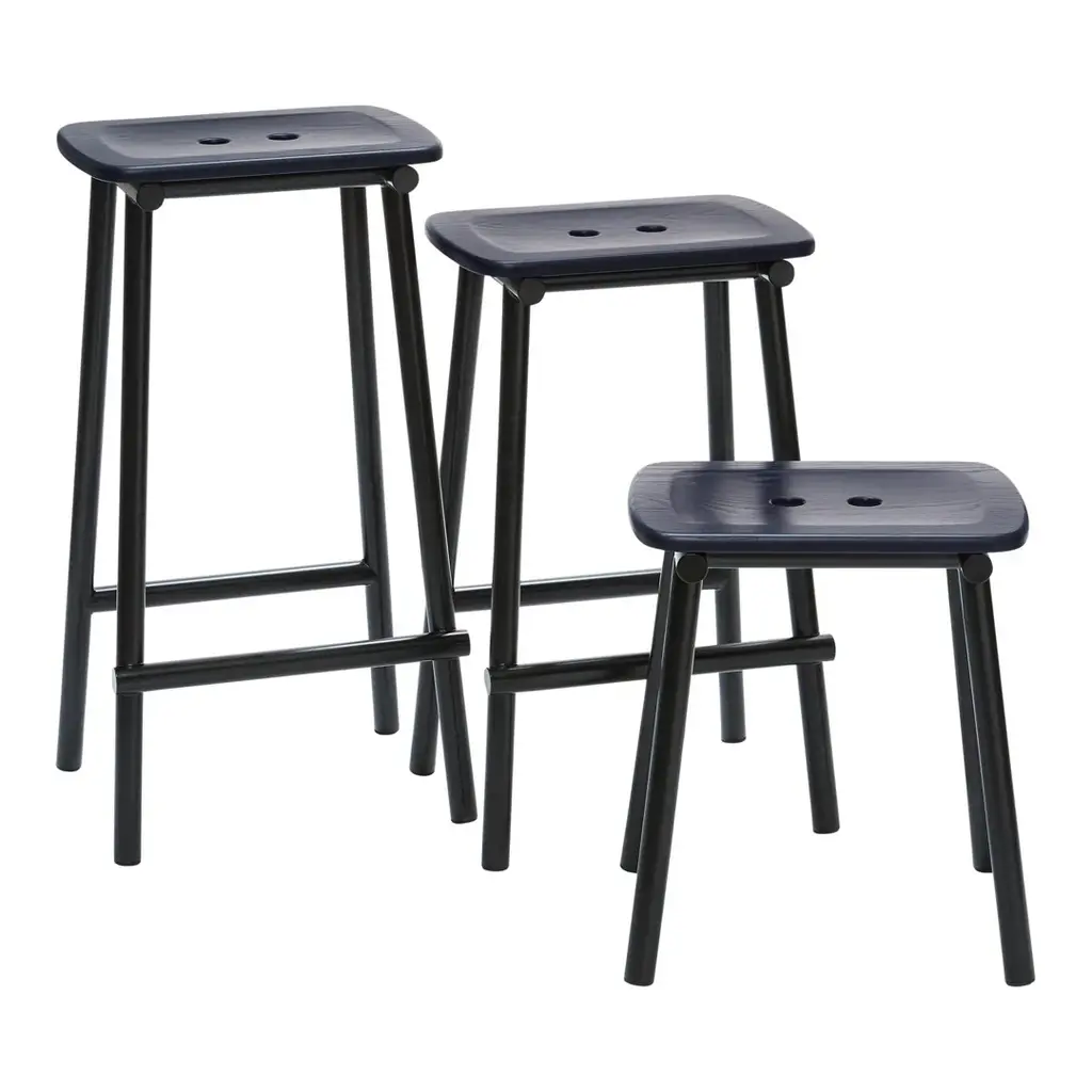 “Tubby yet elegantâ€� is the way to describe the TUBBY TUBE stool collection of three heights. A unique composition of bulky round tubes with a wooden seat or a chunky soft seat pad – a play on volume meeting a tubular frame that creates a classic yet contemporary expression. Place the stools by your kitchen counter, in a bar or restaurant or wherever you need comfortable yet elegant seating spaces.