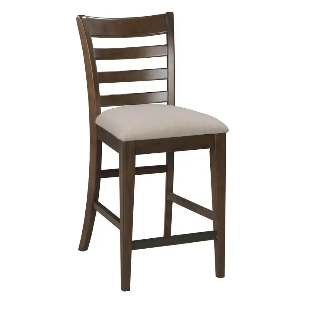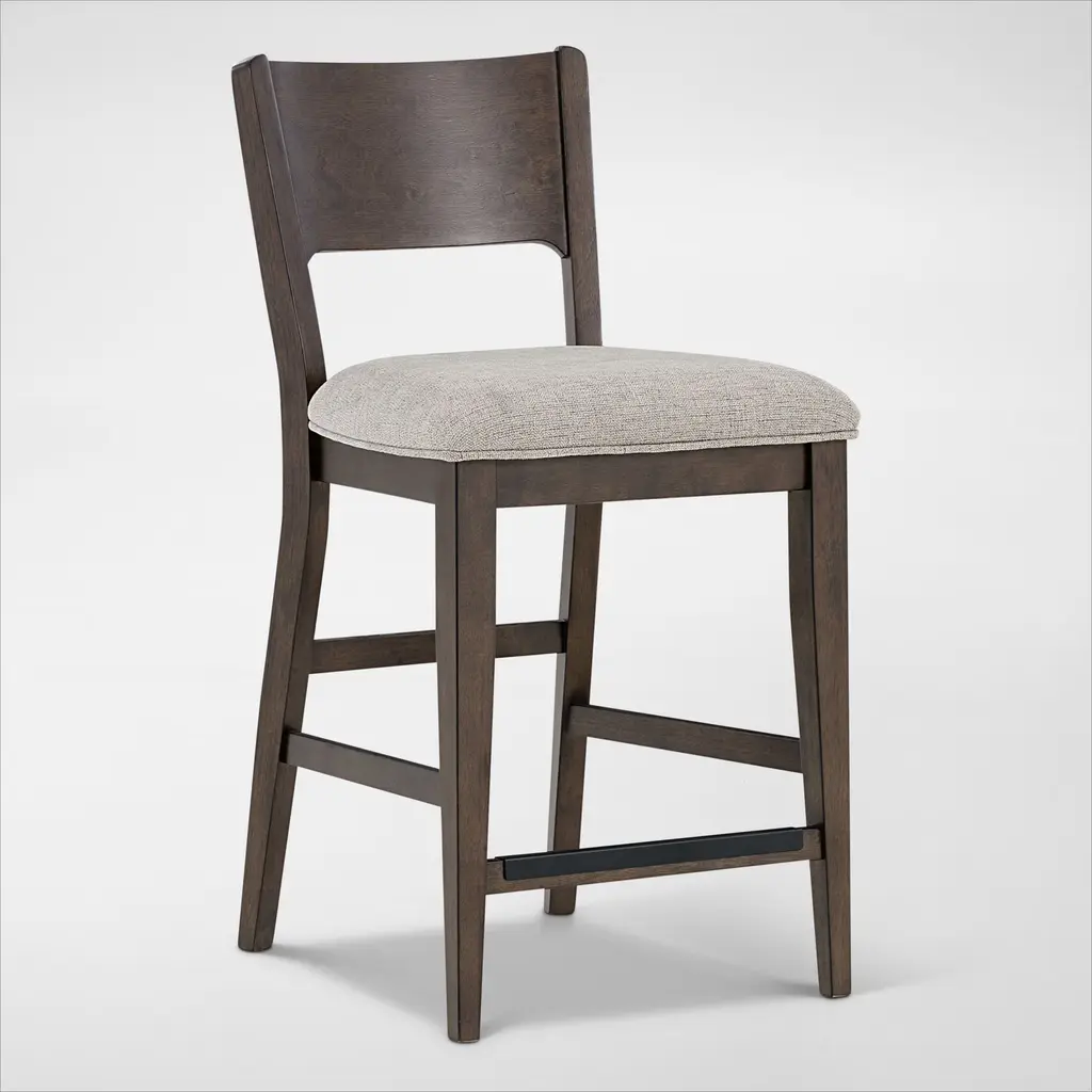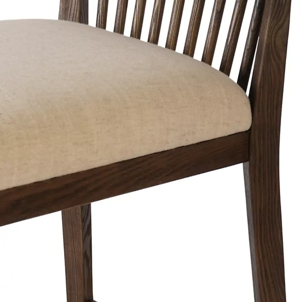 The Tullio Stool from Four Hands adapts the dining chair's Japanese-inspired design into counter height while maintaining the same spindle backrest construction. Its natural ash finish allows the wood's inherent grain patterns to show through the linear framework. The same thick cushion provides comfort at the elevated seating height, while the poly-linen blend upholstery ensures durability through daily use. This stool brings the meditative quality of tea house design to contemporary kitchen and bar settings.
