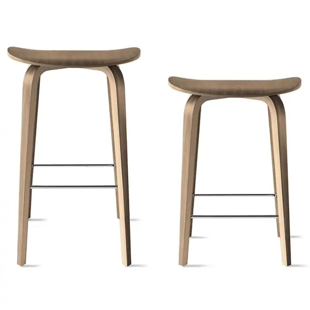 An avant-garde mix of minimalist design and sculptural style, the Under Counter Stool from the Cherner Chair Company offers both visual appeal and sleek refinement in a single package. Designed by Benjamin Cherner in 2019, its sleek, sustainable construction relies on swooping wood laminate legs braced by a durable metal footrest for stability. A signature seat of molded plywood so characteristic of the Cherner family of designs crowns the lower stool body, offering steady seating with an intriguing natural character.