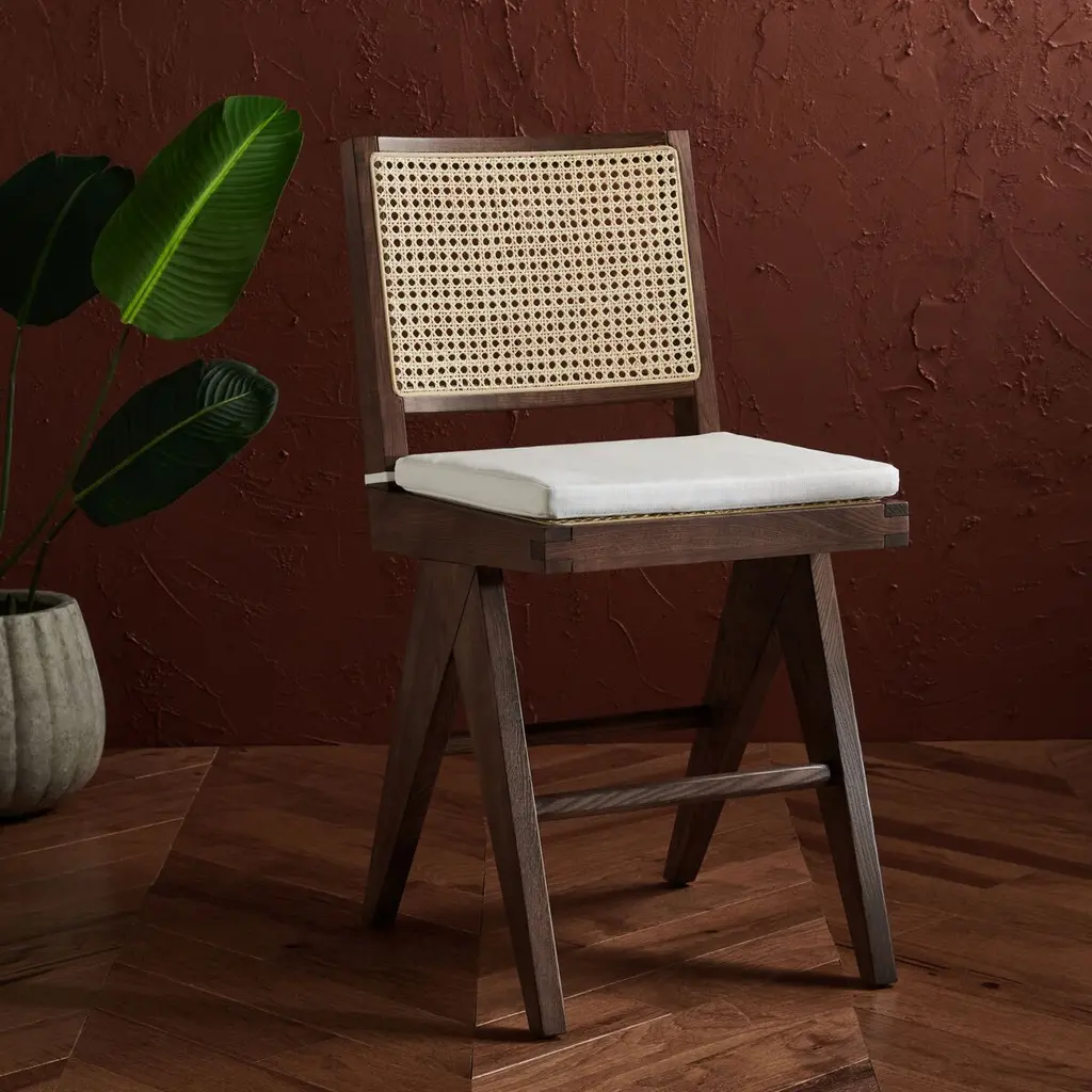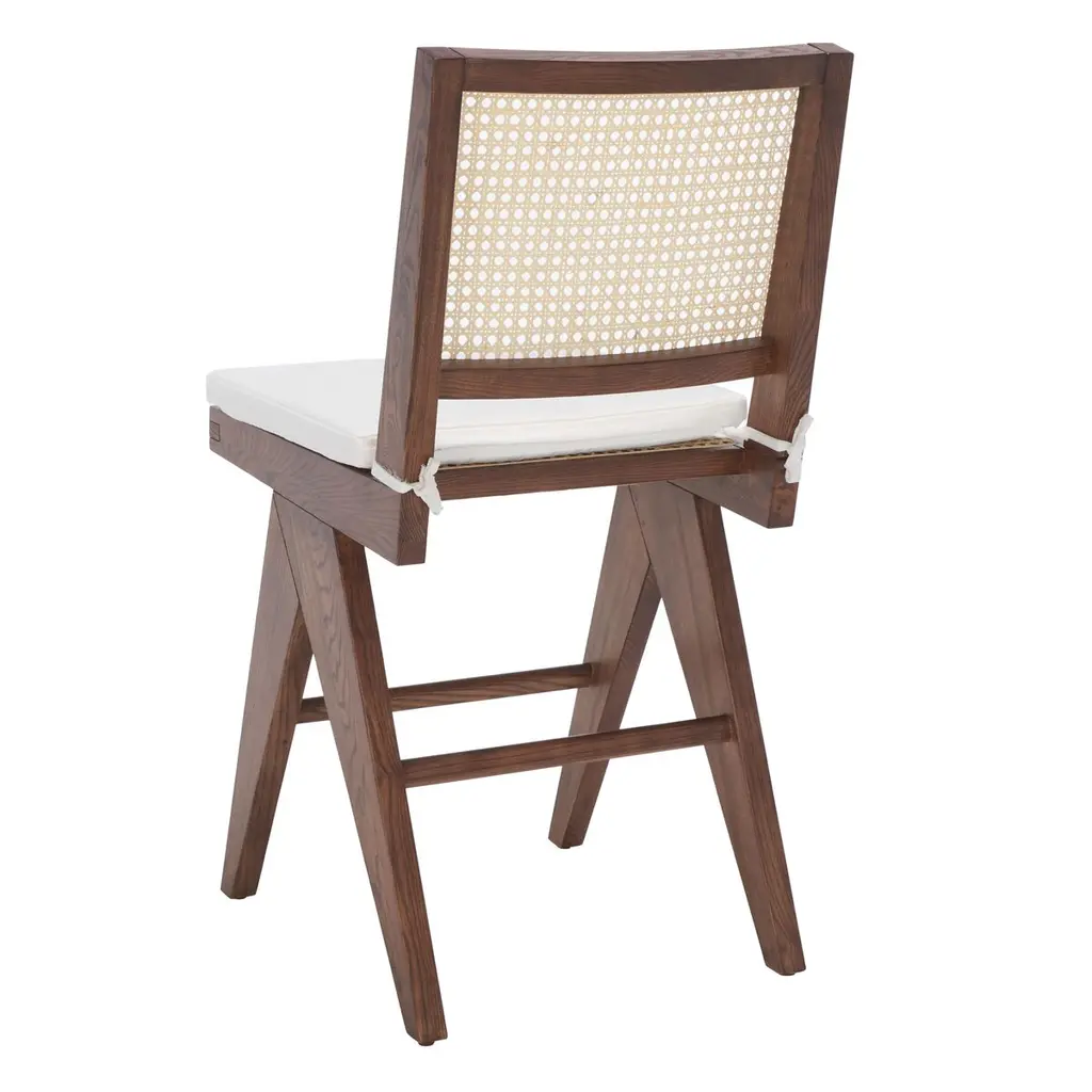 Create a relaxed and casual vibe with our Vale counter stool. Our sleek and clean-lined stool receives a relaxed upgrade with rattan mesh upon the back. Expertly crafted with solid ash wood, the stool is elevated with a modern finish. It features a generously padded white boxy cushion to deliver supreme comfort. Light, airy, and refined, the counter stool brings casual and elegant style to your kitchen counter or high dining areas.