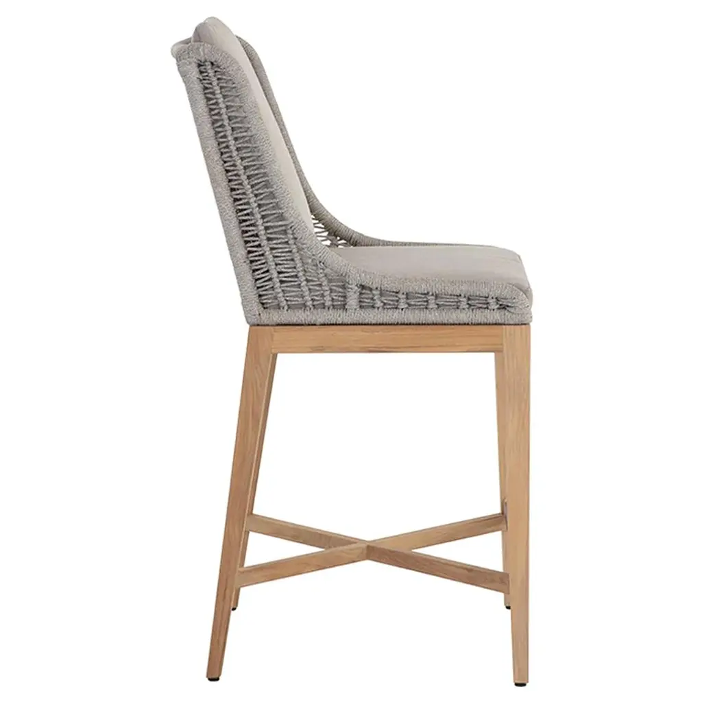 Wagner Coastal Taupe Cushion Natural Teak Woven Outdoor Counter Stool