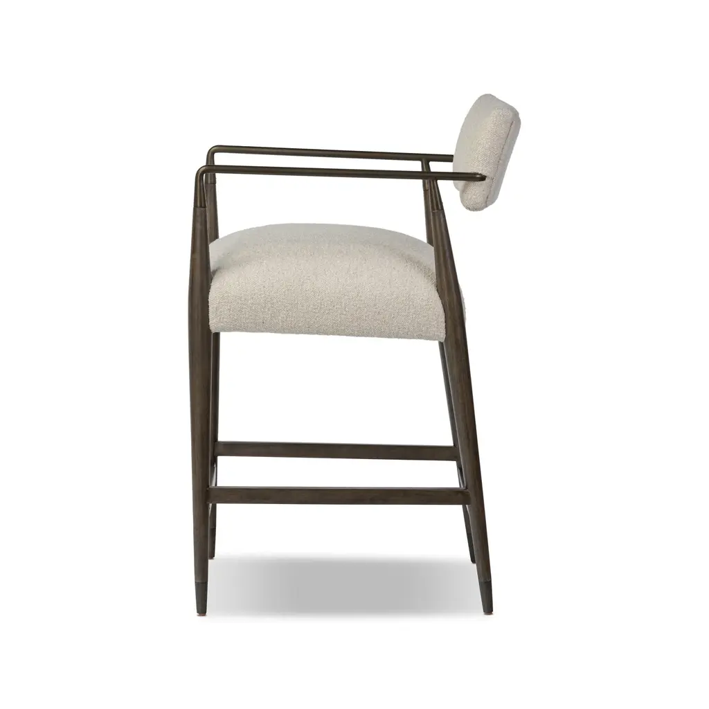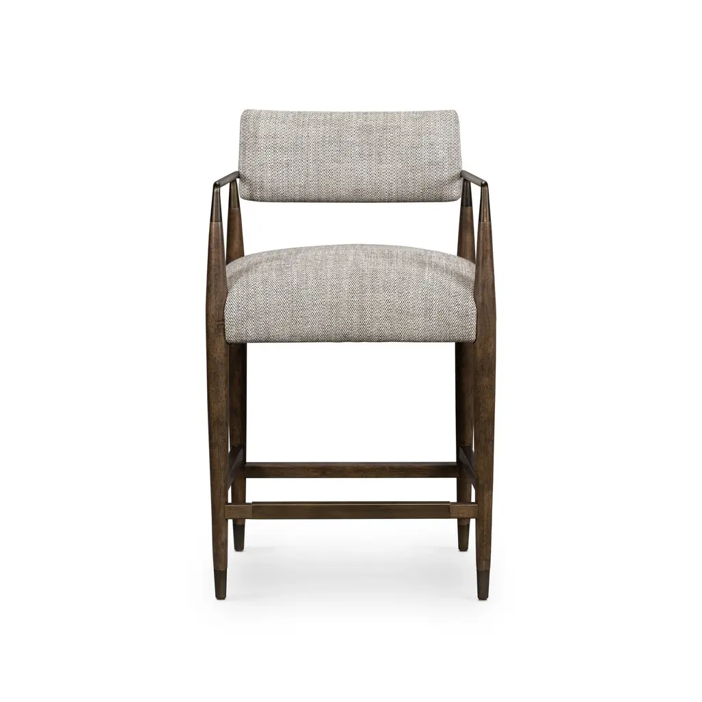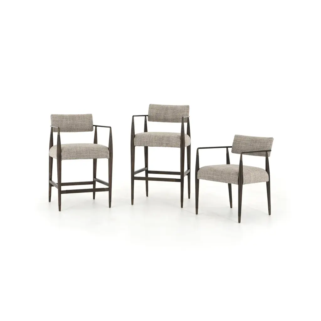 Slim, sculptural style. Angular framing features a mix of bronze-finished metal and solid rubberwood, for a forward-thinking feel. Textural linen-blend seating adopts an invitingly neutral grey hue to move freely between spaces and styles. Performance fabrics are specially created to withstand spills, stains, high traffic and wear, ensuring long-term comfort and unmatched durability. The Waldon collection also includes a bar stool (sold separately). In Stock Early December Ships In 10-14 Business Days Bronze finish metal ferrules and foot bar Performance fabric This image is for illustrative purposes only. The colors shown are accurate within the constraints of lighting, photography, and the color accuracy of your screen.