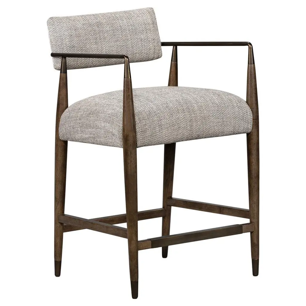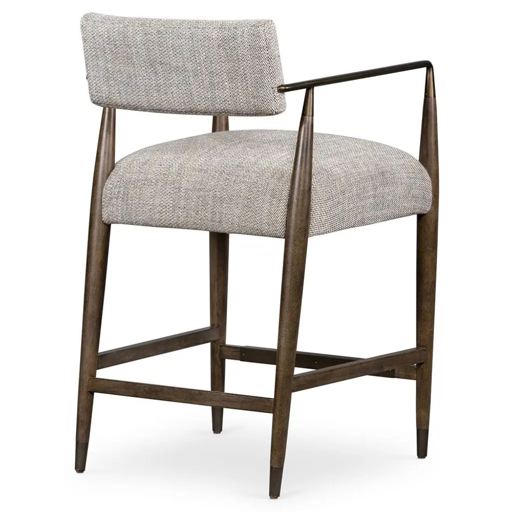 Wally Mid Century Modern Grey Performance Brown Wood Counter Stool