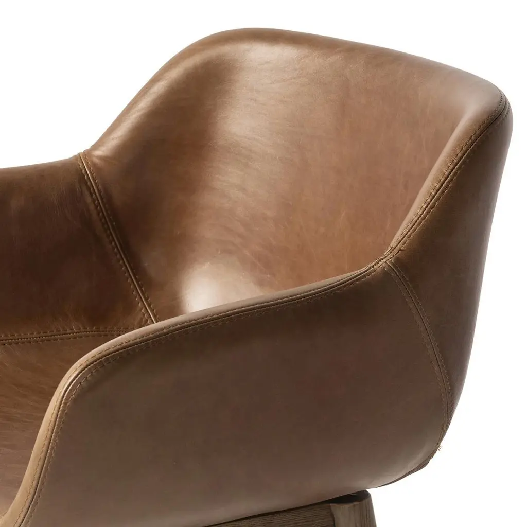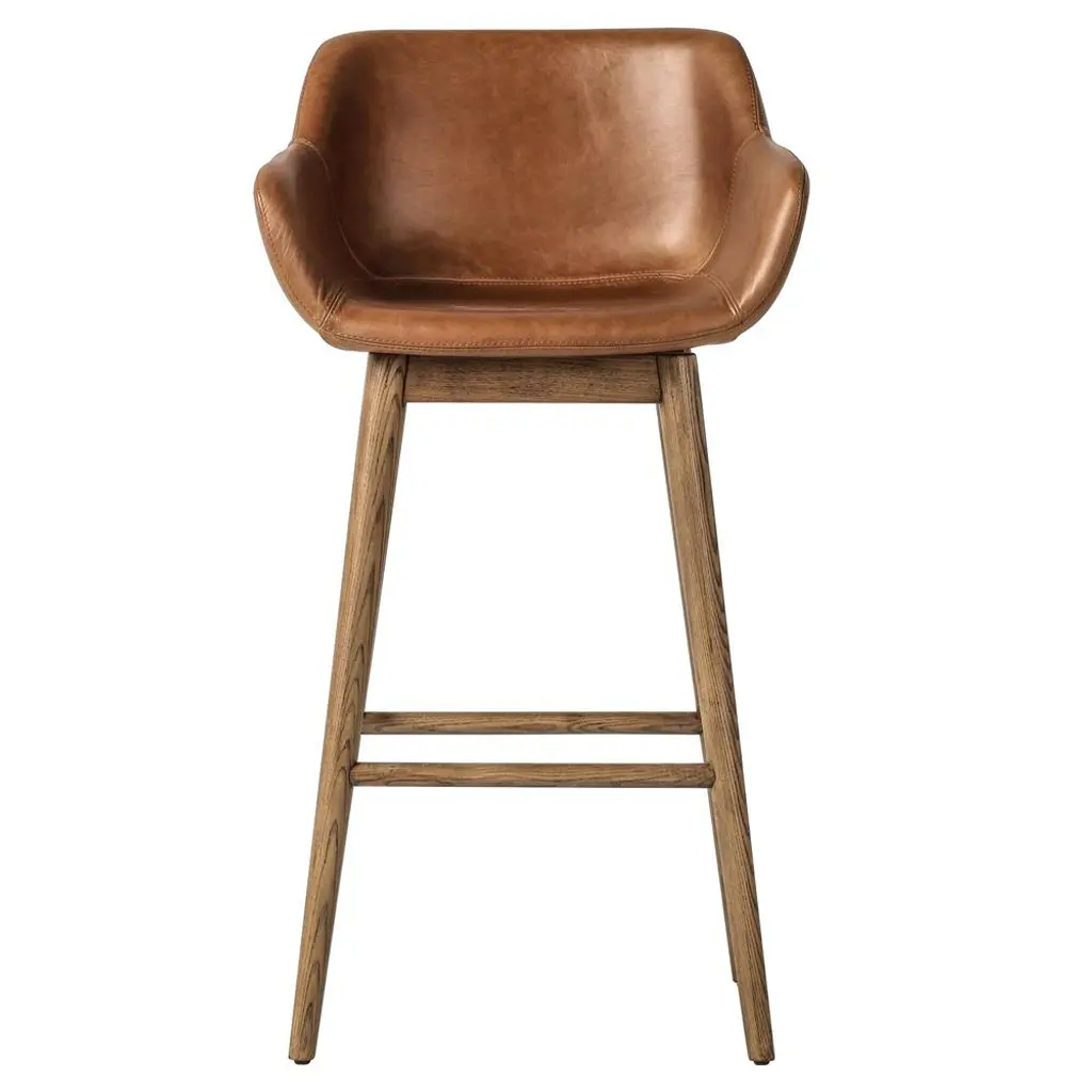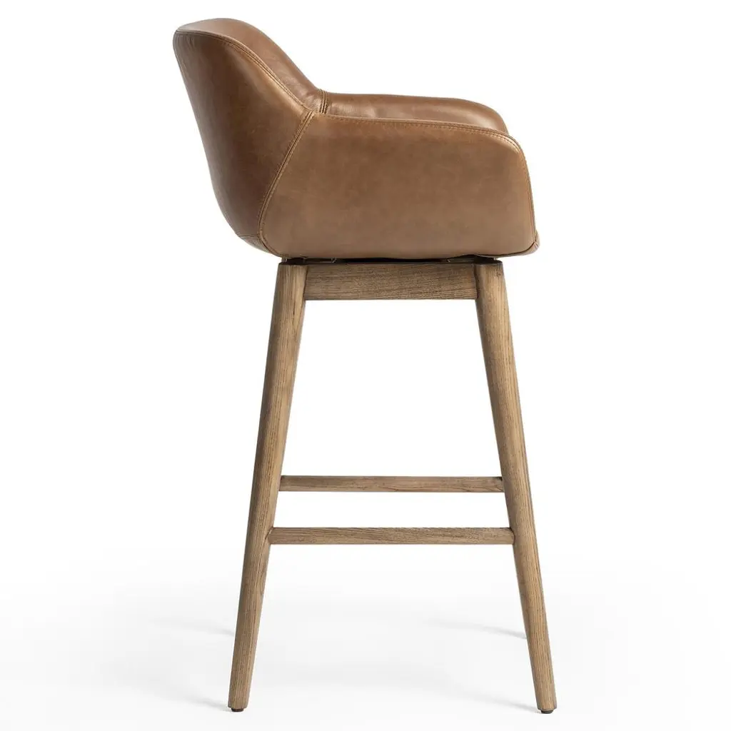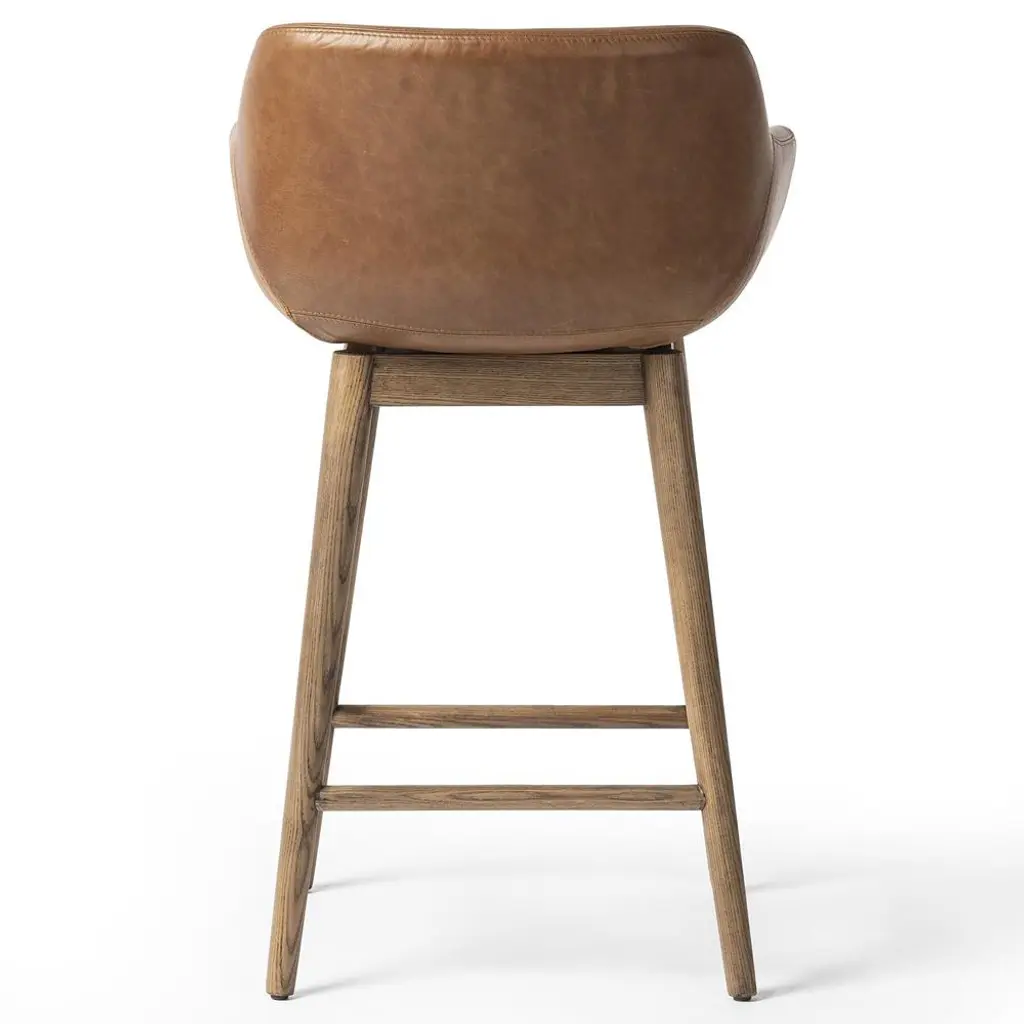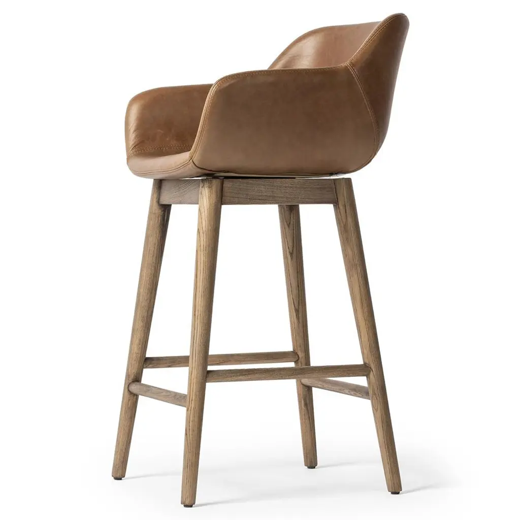 Warren Modern Classic Brown Leather Wood Swivel Counter Stool