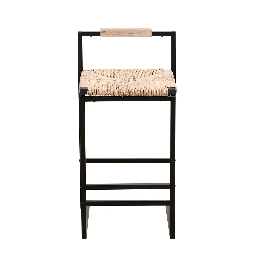Specifications: Experience comfort and style with our new bar stool set made of 60% iron and 40% water hyacinth grass. The sturdy iron frame and four legs provide stability to the stool, and the cushion is made of premium-quality paper rope that ensures a comfortable seating experience. Each set includes two bar chairs that are conveniently packed in a carton along with tools and instructions for easy assembly. Our bar stools are designed with utility in mind. The footrest is thoughtfully placed to help you relax your legs while sitting, and the anti-slip screws on the bottom protect your floors from scratching. Standing at counter height, this bar stool set is perfect for kitchen counters, bar tables, or any high-top table. Experience the perfect blend of comfort, style, and utility with our bar stool set. Order now and enjoy a cozy and fashionable addition to your home. Back & Seat 1. The wooden and low back design make the stool fashion and match most home decor. 2. Water hyacinth hand weave seat, breathable and comfortable. Footrest Sturdy footrest, rest your legs and feet well. Thicken Metal Frame Using 0.78*0.78'' (2*2cm) metal cube, very stable and durable.Adjustable Pads Each leg has an adjustable pad to keep the stool stable. Sturdy and Durable: Made with a natural Water Hyacinth woven seat and black metal frame, this kitchen stool ensures stability and is built to last. The anti-slip screws at the bottom of the legs add to the sturdiness of the stool. Stylish Design: The simplicity of the design gives this counter stool a modern and chic look that will match any home decor. The natural materials used in this dining stool are eco-friendly and don't harm your body. Perfect Dimensions: Measuring at 16.53"(L)x15.35"(W)x31.5''(H), this island barstool has a maximum weight capacity of 220lbs and is perfect for most people. The set of 2 stools come in a single box weighing approximately 25lbs with dimensions of 33.27''x7.48''x16.34''(LxWxH). Versatile Usage: These stools are perfect for use in bars, kitchens, dining rooms, living rooms, vanity rooms, cafes, restaurants, apartments, homes, and offices. Easy to Assemble: Assembly is a breeze with the provided tools and instructions. One person can easily assemble these bar stools in no time. Material: 60% Iron + 40% Water Hyacinth Grass Care: To protect finish, do not apply abrasives or household cleaners, dust with soft dry cloth. Blot spills immediately and wipe with a clean damp cloth. Do not expose to direct sunlight or excessive temps. Hardware may loosen over time, periodically check to make sure all connections are tight and retighten if necessary. NOTE1: Expertly crafted with a hand-woven water hyacinth seat. Seat is in natural finish. Due to nature of natural grasses the color will vary and no two pieces will be exactly the same. NOTE2: There are no screw holes in seat, the seat is made by wooden frame, please use self-tapping screws to fix the seat to metal frame.