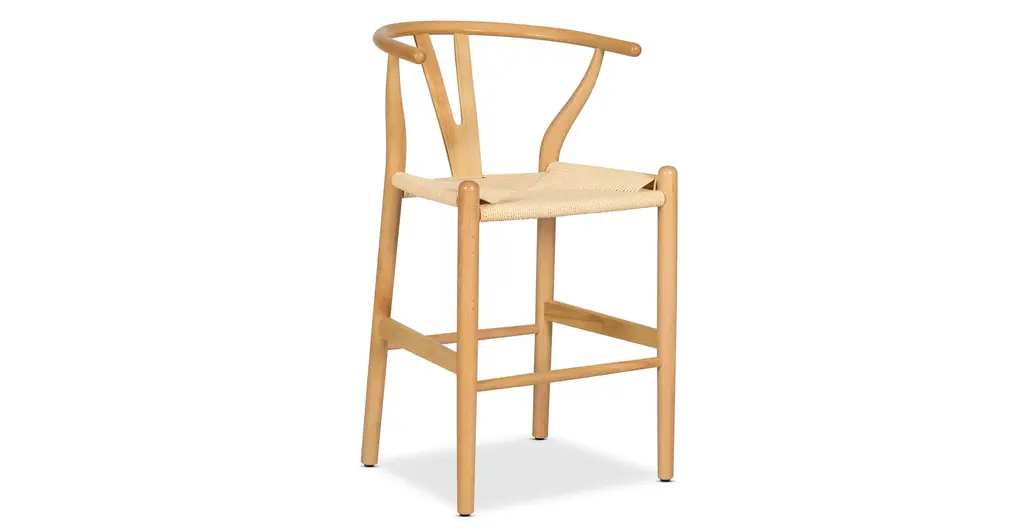 True mid-century inspiration goes a long way with the Weave Counter Stool. Boasting a familiar silhouette with a curved back and clean lines, the weave delivering that punch of drama that your living area or library has been seeking. The stool features a solid wood frame with a medium finish and a woven rope seat that offers textural contrast. This counter stool is perfect for a kitchen countertop, and creates a classic, natural aesthetic for the home.