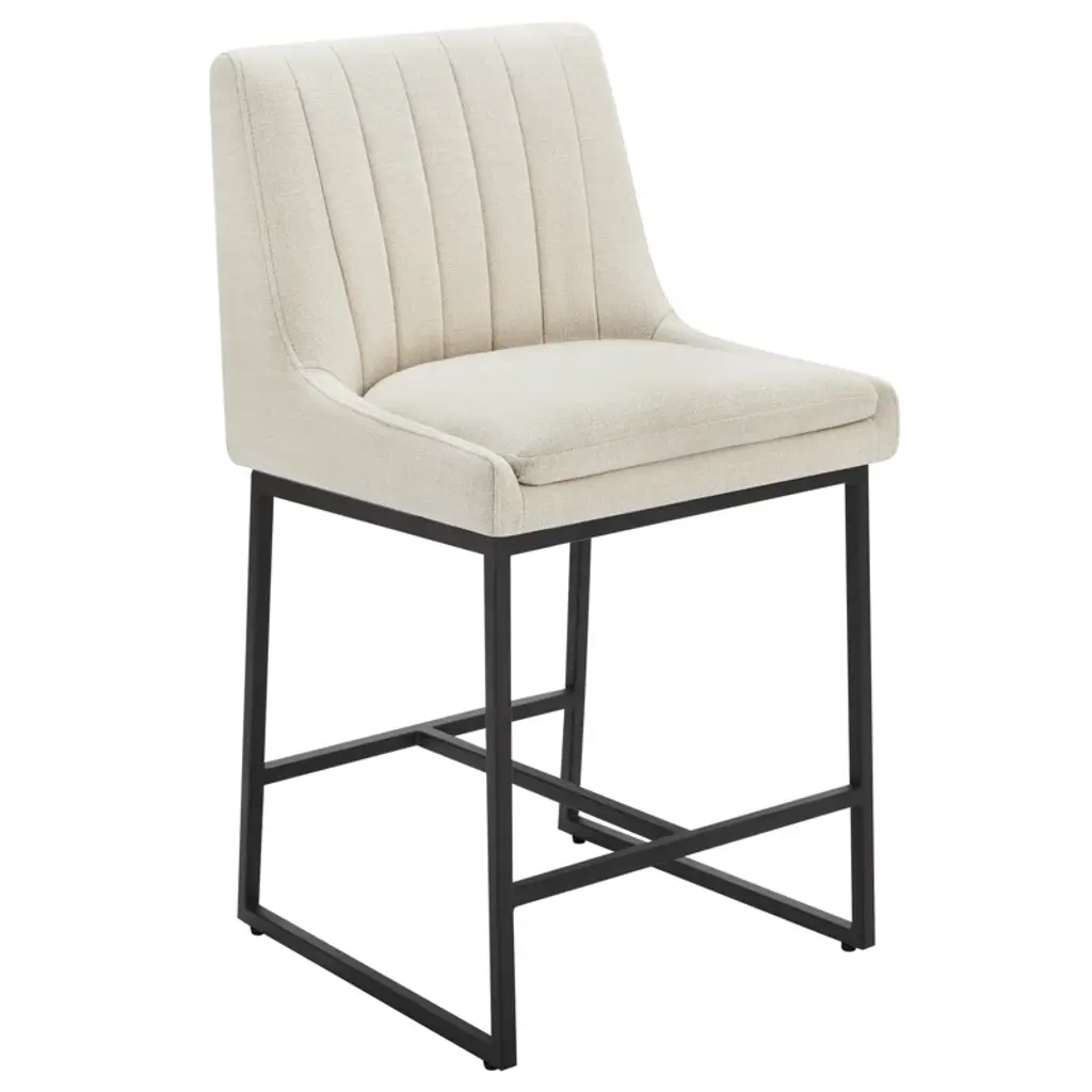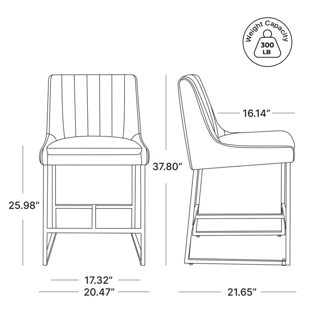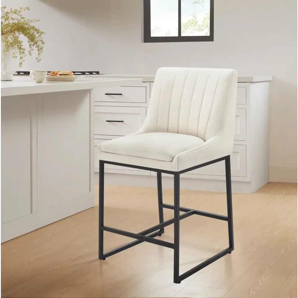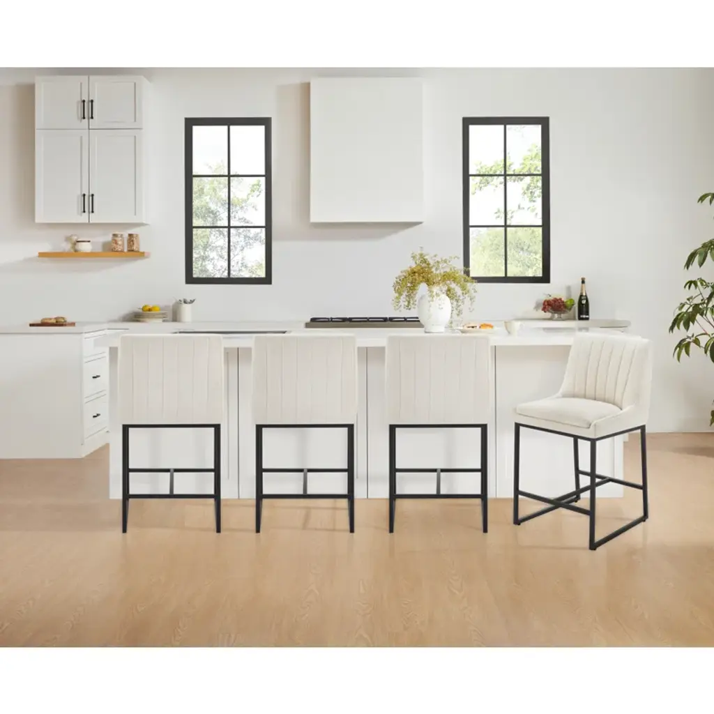 Reinvent your kitchen island or bar area with the Welburn Counter Stool, designed to bring modern style and comfort to your space. Airy yet durable, the sled-style base is sturdy iron, offering long-lasting stability while supporting up to 300 lbs of weight. Its slightly curved back provides ergonomic support, while high-density foam padding ensures lasting comfort. A channel-tufted design features vertical stitching for a structured, elegant look that instantly brings your room to life with its rich texture. Measuring 26-in., the seat height is ideal for counter-height kitchen islands and tables. Whether special occasion entertaining or everyday dining, the Welburn Counter Stool blends transitional style with timeless appeal and enduring quality to elevate your space.
