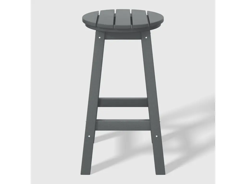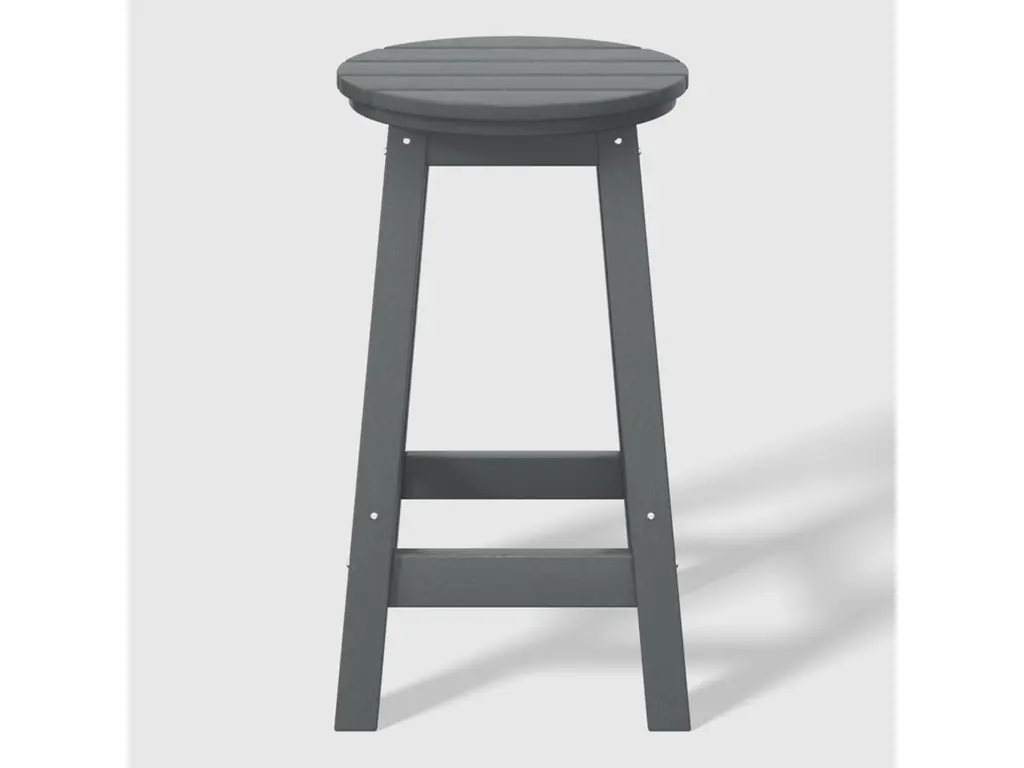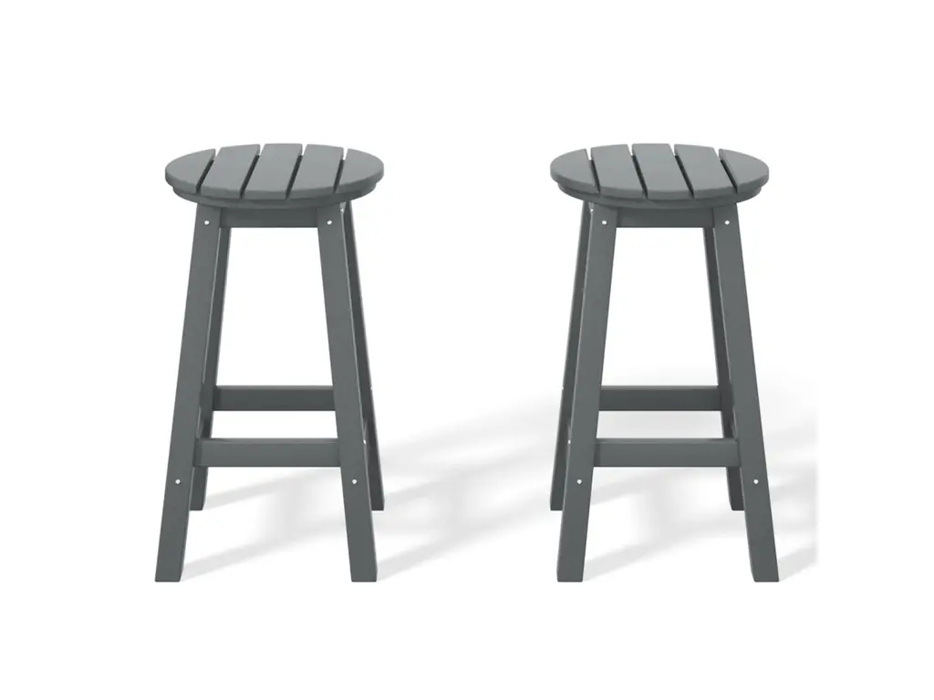 Meet your seating needs with simplicity—this set of two 24" counter-height round-seat bar stools is a delightful addition to your outdoor patio, around your outdoor patio bar or outdoor bistro table. Created out of durable and recycled HDPE material that is perfect for the outdoors thanks to its UV and weather-resistant properties that protect the stool. Available in a range of fade-resistant solid colors, ensuring that the charming color stays vibrant each season. Offering a backless design that allows the stool to be stored underneath the table with ease. Classic yet modern design effortlessly blends with your existing decor. Stable design with the four sturdy square legs and foot bars that provide a well-balanced and comfortable seating experience.