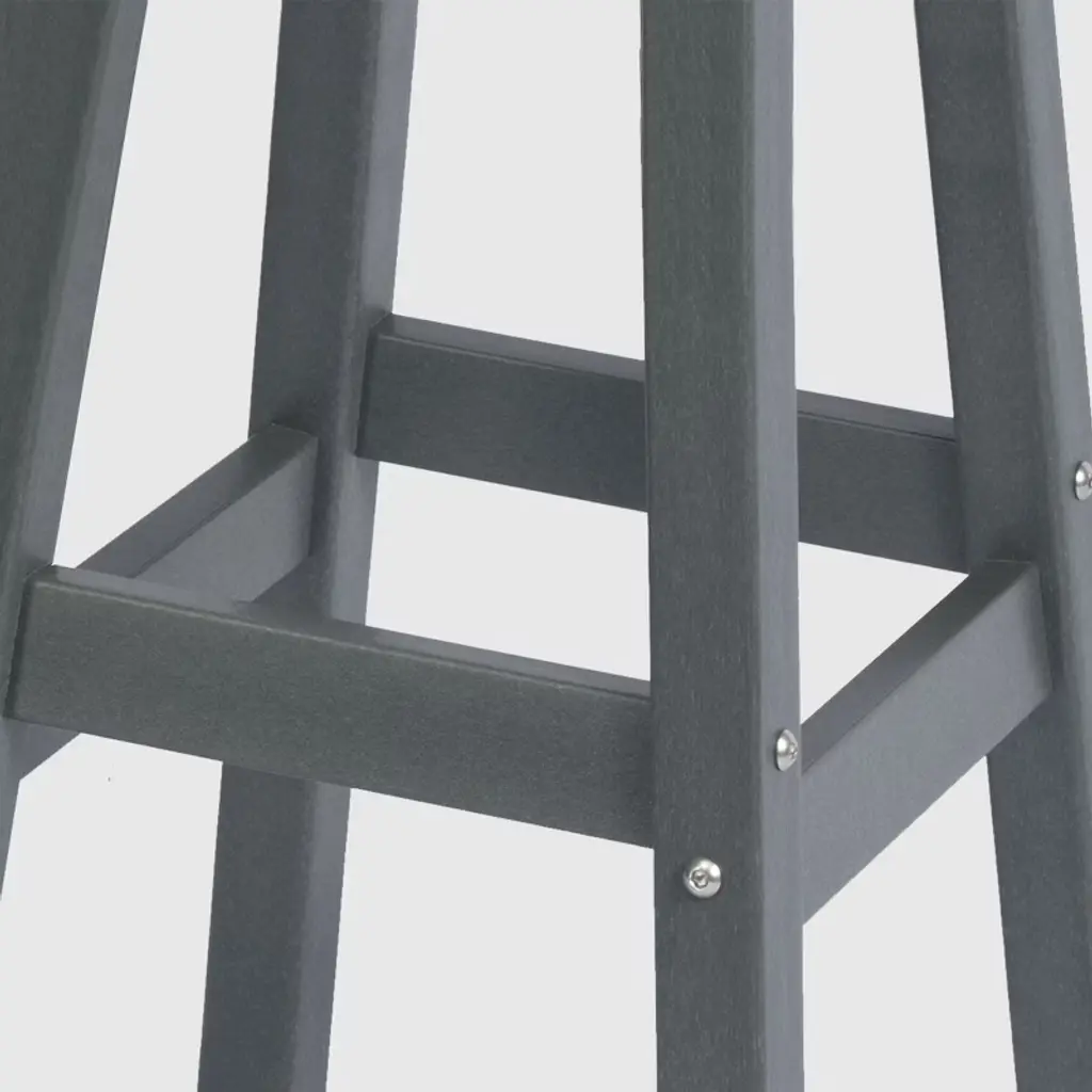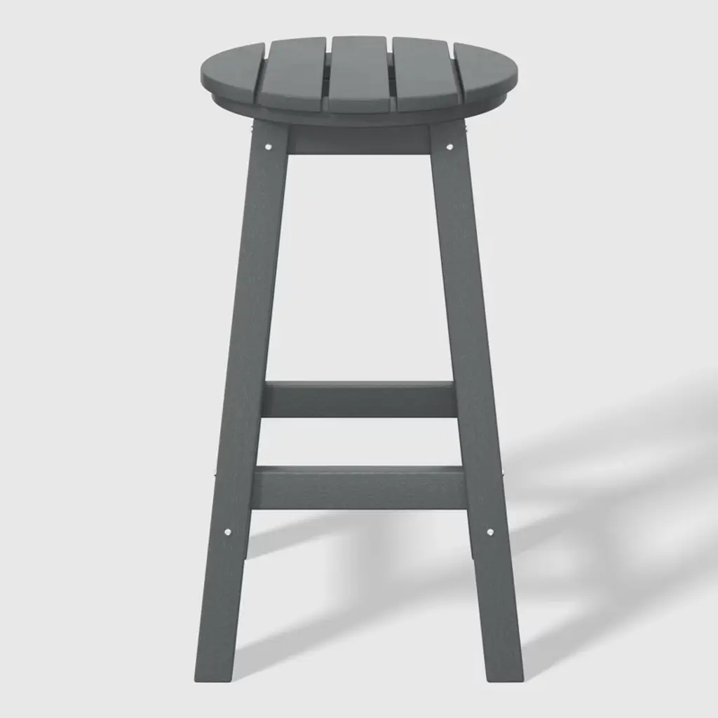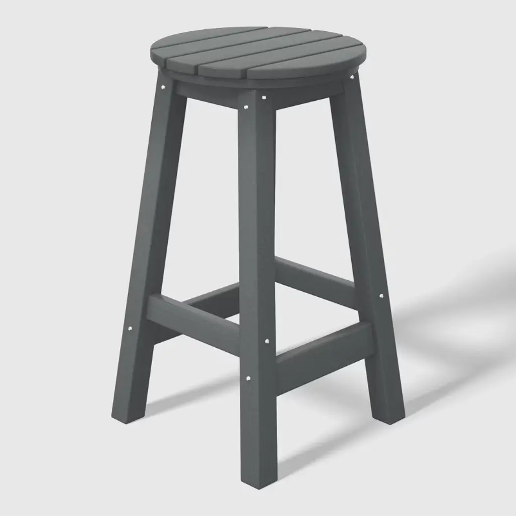 This 24" counter-height round-seat bar stool presents a sophisticated addition to your outdoor patio, ideally suited for placement around your outdoor patio bar or bistro table. crafted from durable and recycled HDPE material, its design is tailored for outdoor use, boasting UV and weather-resistant properties that safeguard the stool. Available in a palette of fade-resistant solid colors ensures the enduring vibrancy of its charming color each season. backless design makes for seamless storage underneath the table, offering both versatility and elegance. classic yet modern aesthetic effortlessly harmonizes with your existing decor, while the A-frame design, supported by four sturdy square legs and foot bars, provides a well-balanced and comfortable seating experience.While we strive to accurately represent product colors, please be aware that actual colors may vary slightly due to individual screen settings and lighting conditions. FeaturesConstructed from robust and environmentally friendly HDPE materialWeather resistant to protect against the harsh outdoor elementsFade and UV resistant to protect against the sunA-frame construction adds stabilityStainless steel hardware prevents rustLightweight constructionEasy to AssembleDetails:Product Type: Patio Bar & Counter StoolsWhat's Included: (1) Counter StoolCounter StoolDimensions: 13.5" W x 13.5" D x 24.25" HWeight: 12.75 lbs.Seat Width: 13.75"Seat Depth: 13.75"Seat Height: 24"Weight Capacity: 330 lbs.