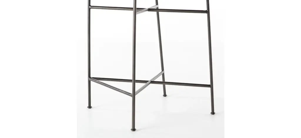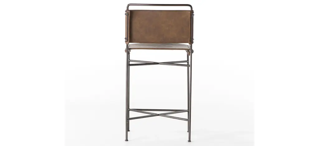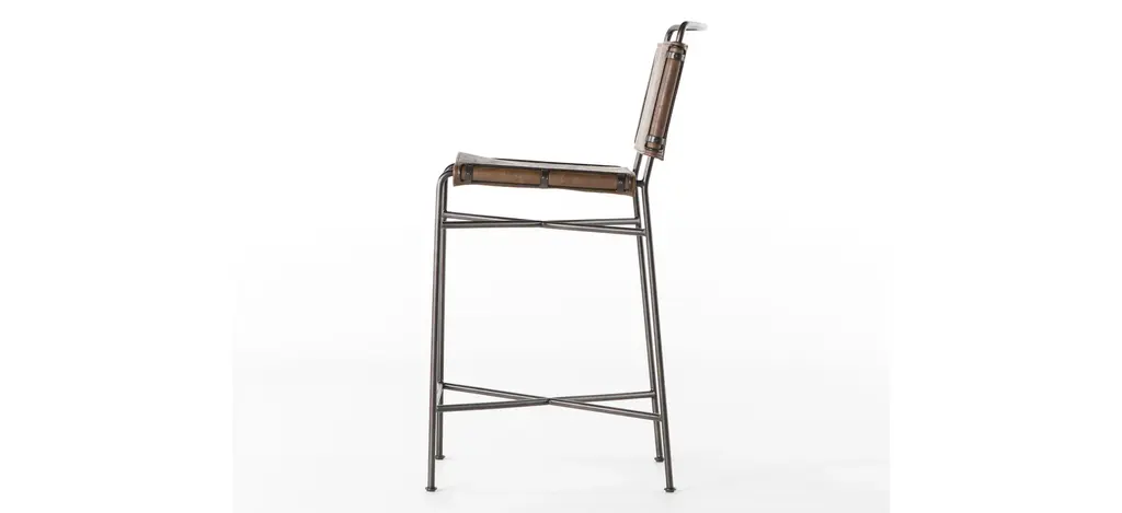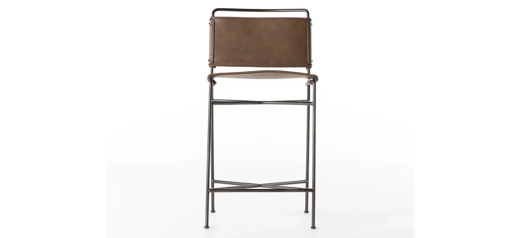 Slim lines and mixed materials combine for ample comfort. Architecturally inspired steel tubing is graced by simply contoured distressed brown seating.
