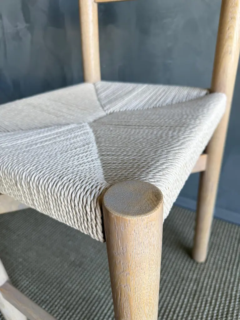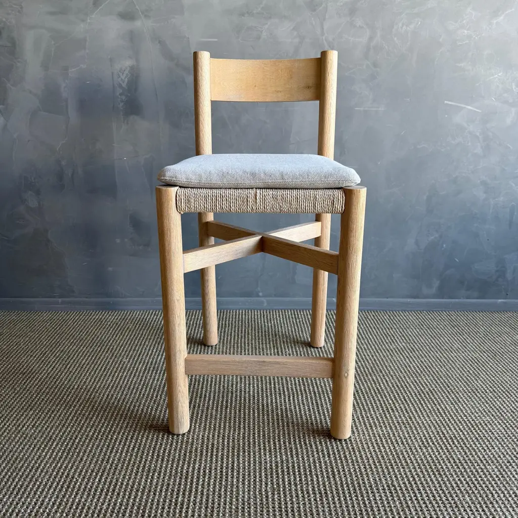 White Oak Counter Stool With Woven Seat And 100% Hemp Seat Cushion