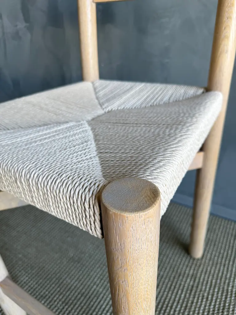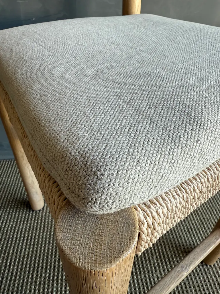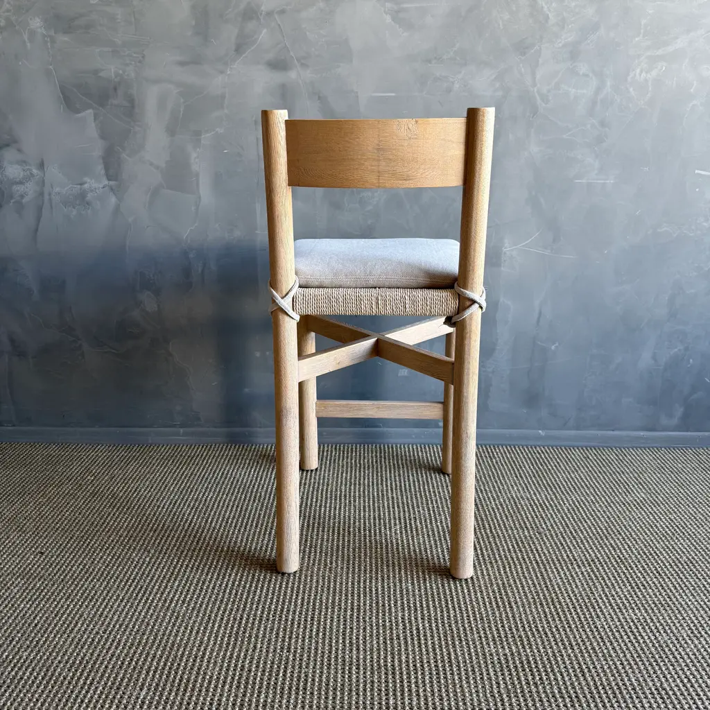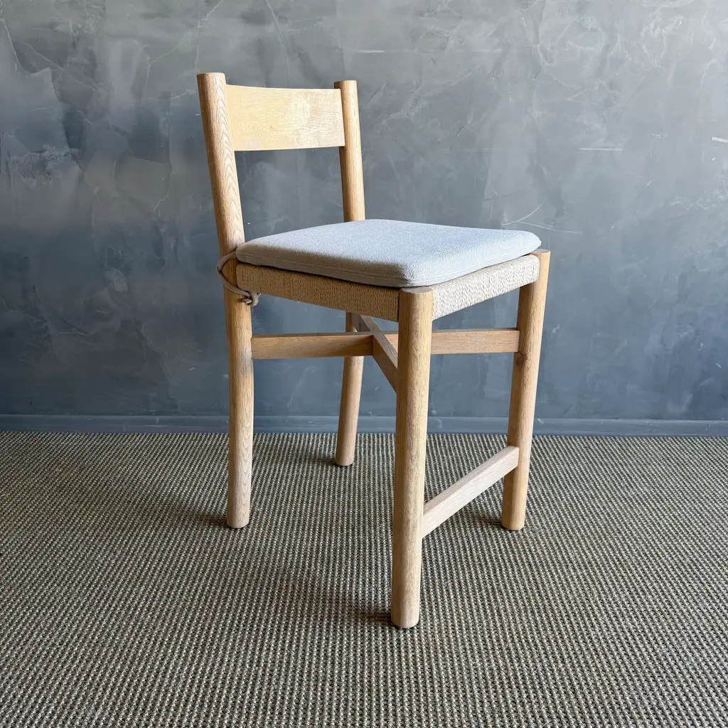 White Oak Counter Stool With Woven Seat And Hemp Seat Cushion
