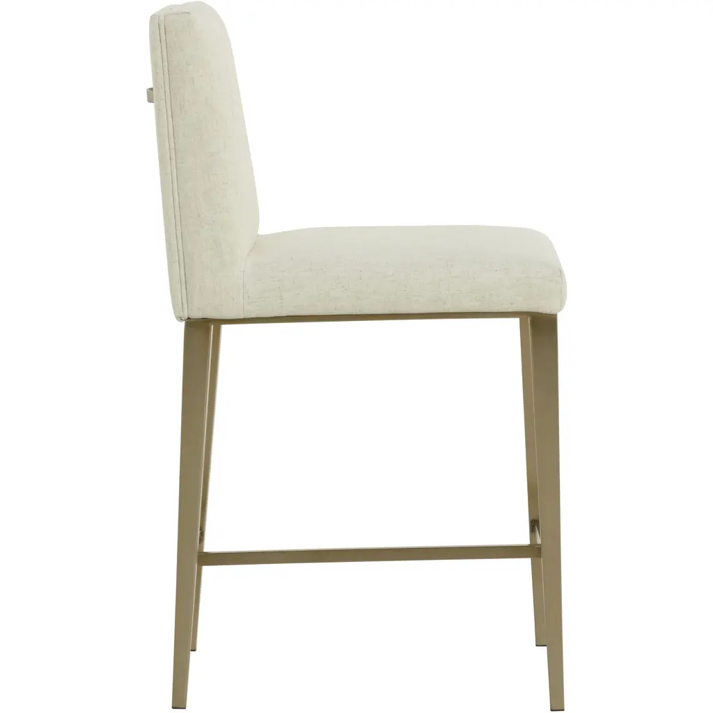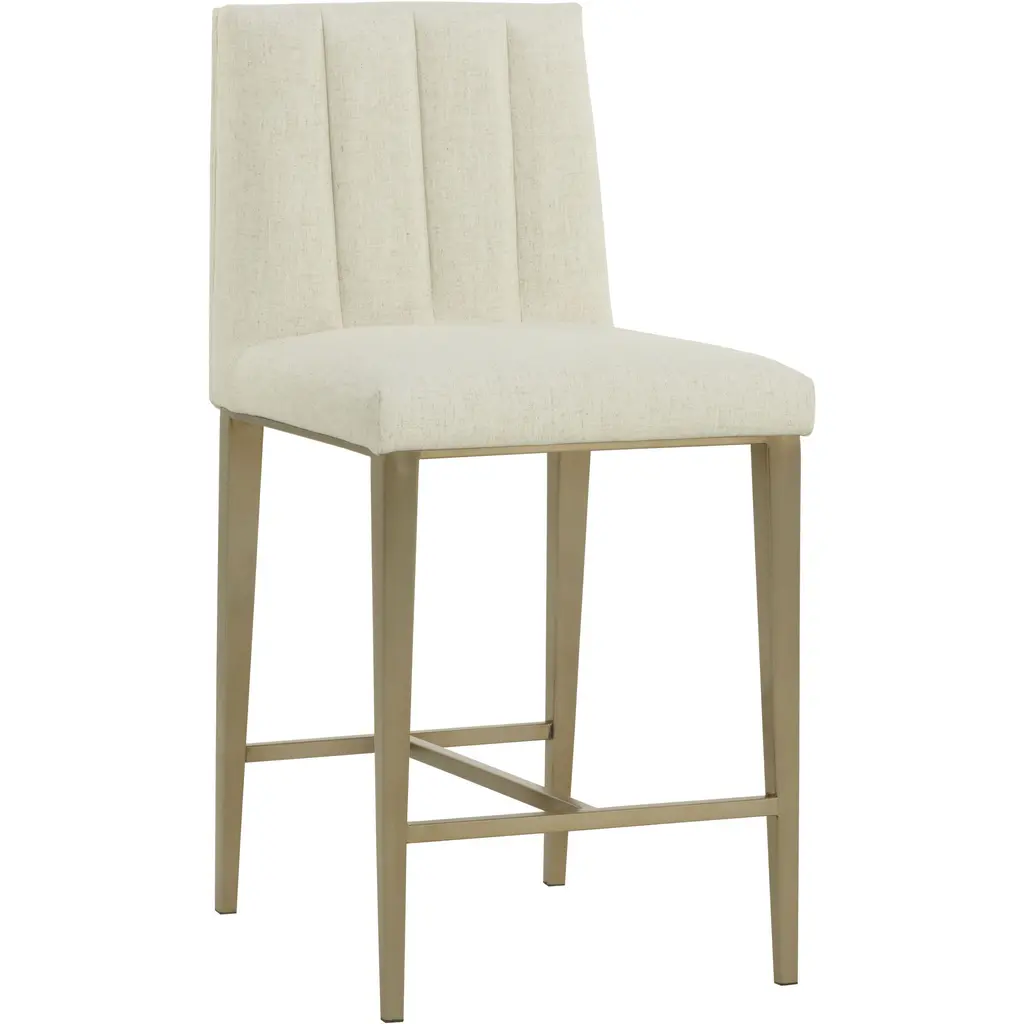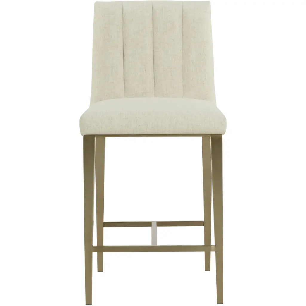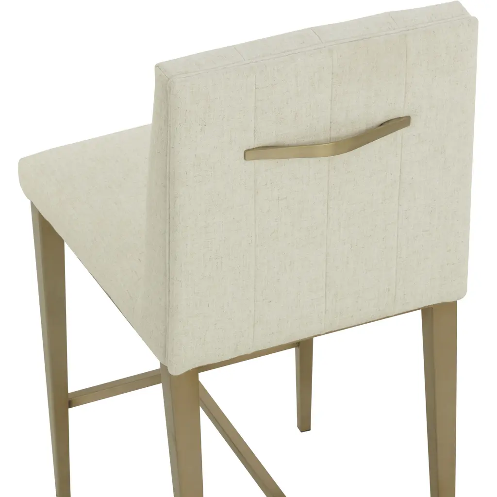 Minimal and classic best describes the Wilbur Counter Stool. Upholstered in geralt linen performance fabric with vertical channeling on the back seat for added flair. Finished with powder-coated stainless steel legs and a matching decorative handle.